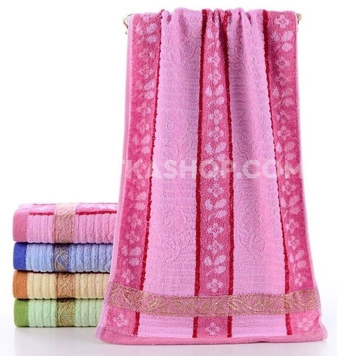 Рушник 7014 кухонний махровий /cotton, розмір 70*35 -уп. 12 шт -(Кольорові /яскраві +на широких смужках квіти +вставка із золотою вішивкою листочків -кухня 70*35)
