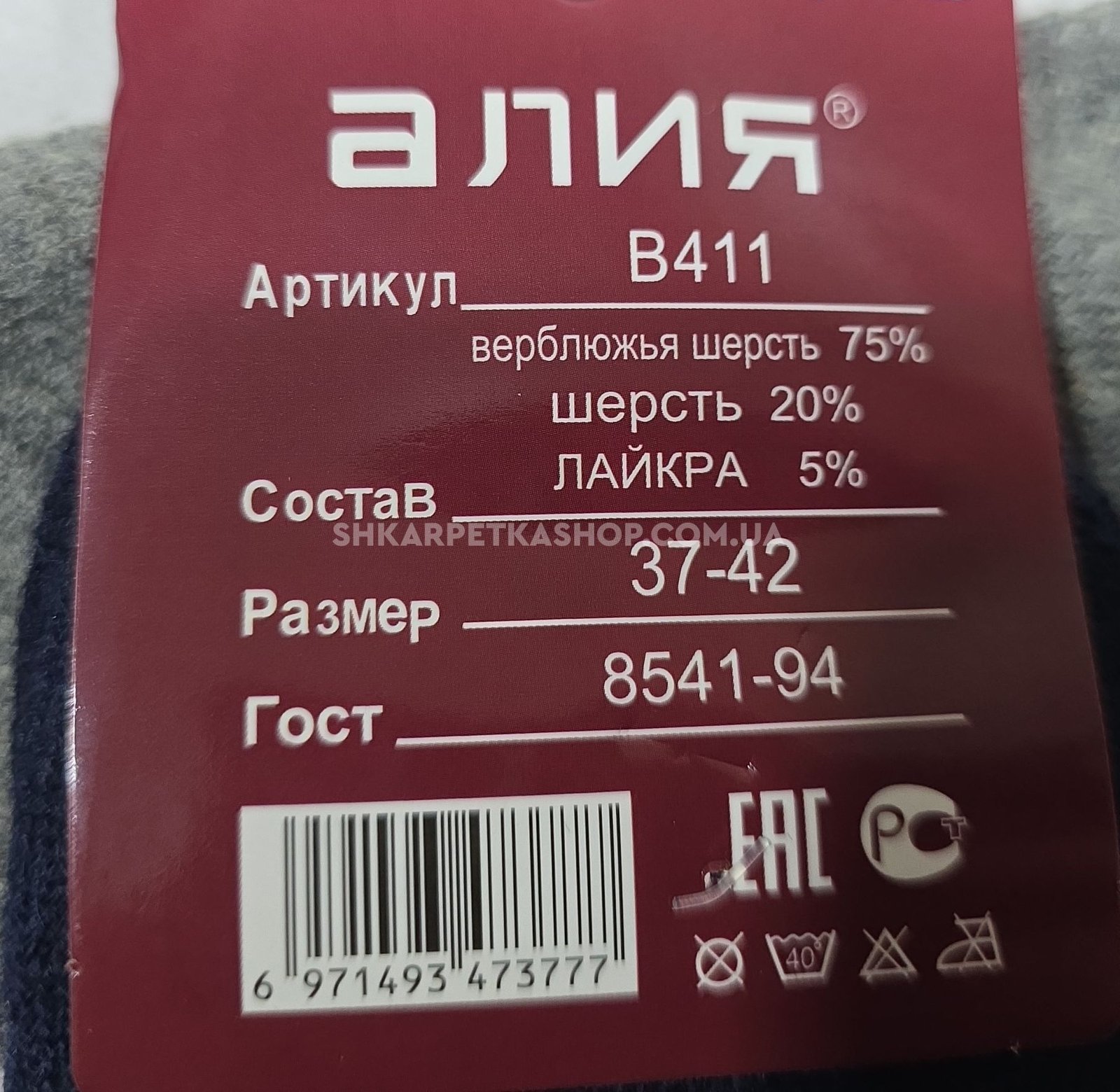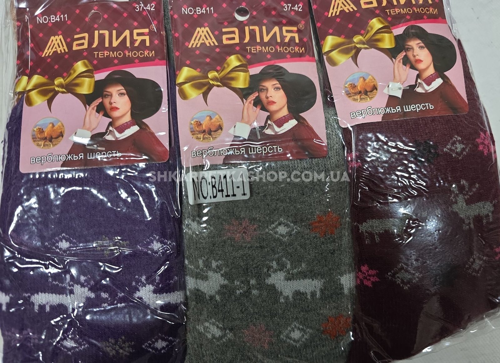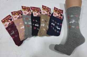 Шкарпетки "Алія" В-411-1 термо махрові +верблюжа вовна жін. р. р. 37-42 -асорті -(Однотонні ++під гумкою орнамент з оленями) -уп. 12 шт.