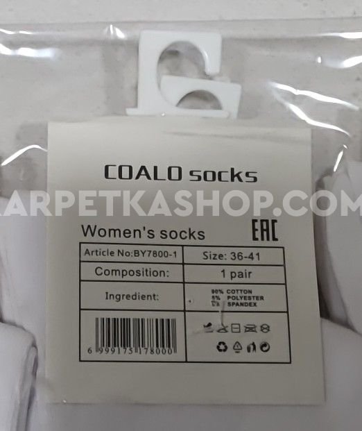 Шкарпетки "COALO" 7800-1 стрейч /cotton жіночі, р. 36-41 -(Теніс /білі -жін.) - уп. 10 шт