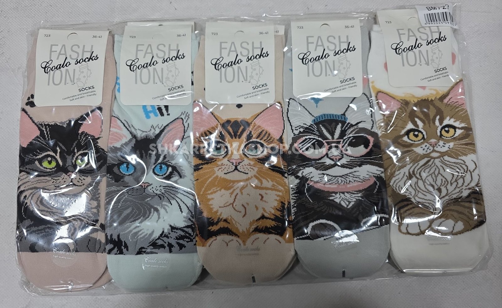 Шкарпетки "COALO" BМ-723 стрейч /cotton жіночі, р. 36-41 -асорті -(укорочені /3D - мікс котиків) - уп. 10 шт