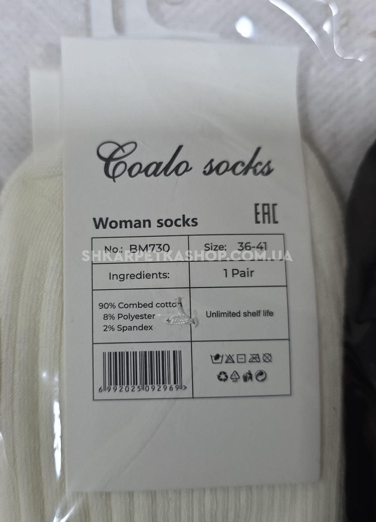 Шкарпетки "COALO" BМ-730 стрейч /cotton жіночі, р. 36-41 -асорті -(укорочені /однотонні в різний рубчик) - уп. 10 шт