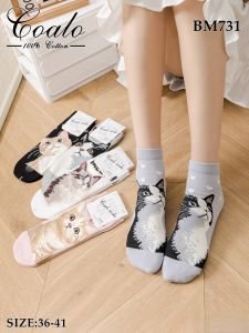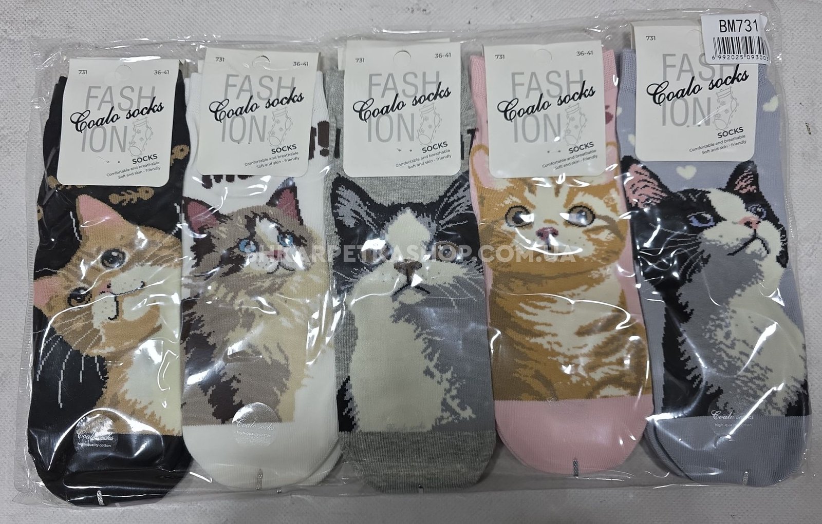 Шкарпетки "COALO" BМ-731 стрейч /cotton жіночі, р. 36-41 -асорті -(укорочені /3D -мікс різних котиків) - уп. 10 шт