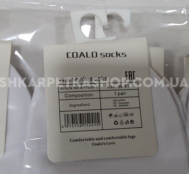 Шкарпетки "COALO" BY-7500-1 стрейч /cotton жіночі, р. 36-41 -(Середні / білі +широка гумка в рубчик -жін.) - уп. 10 шт