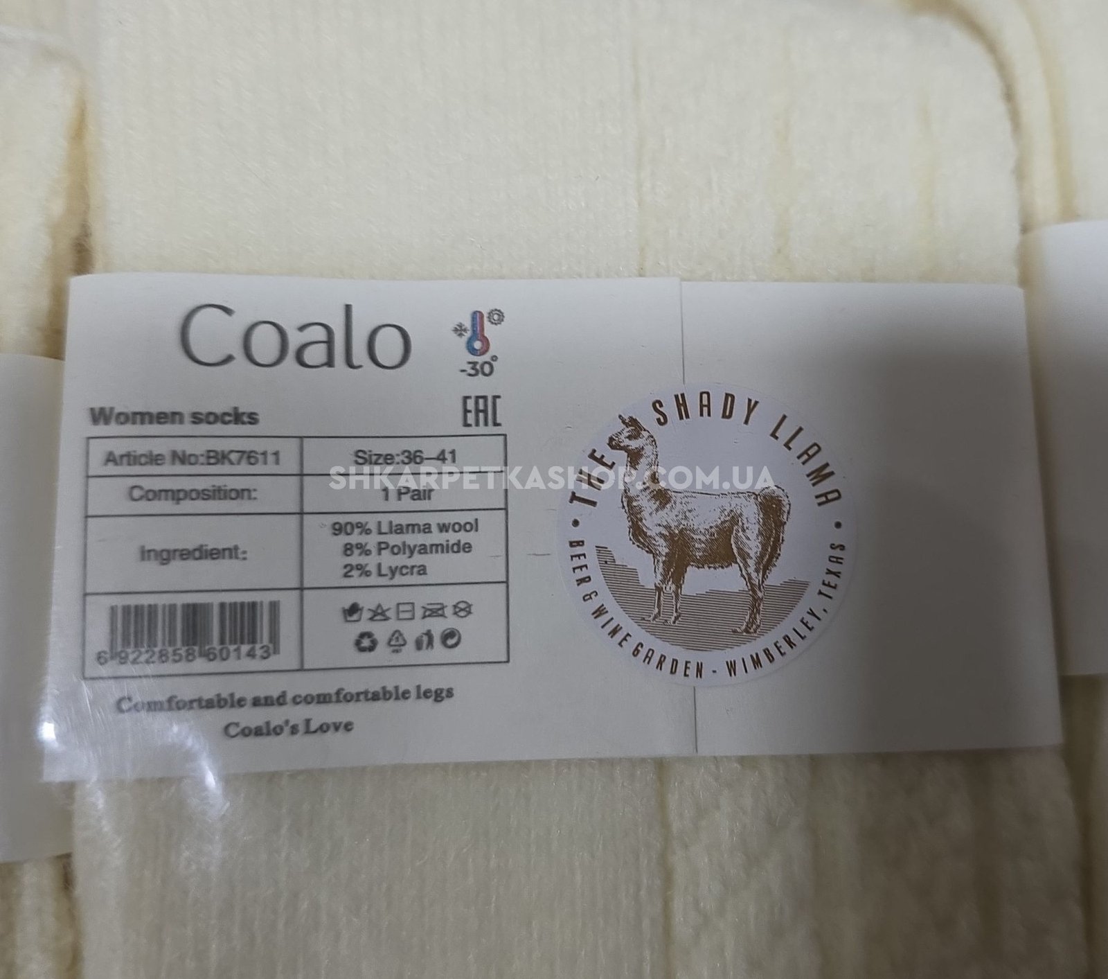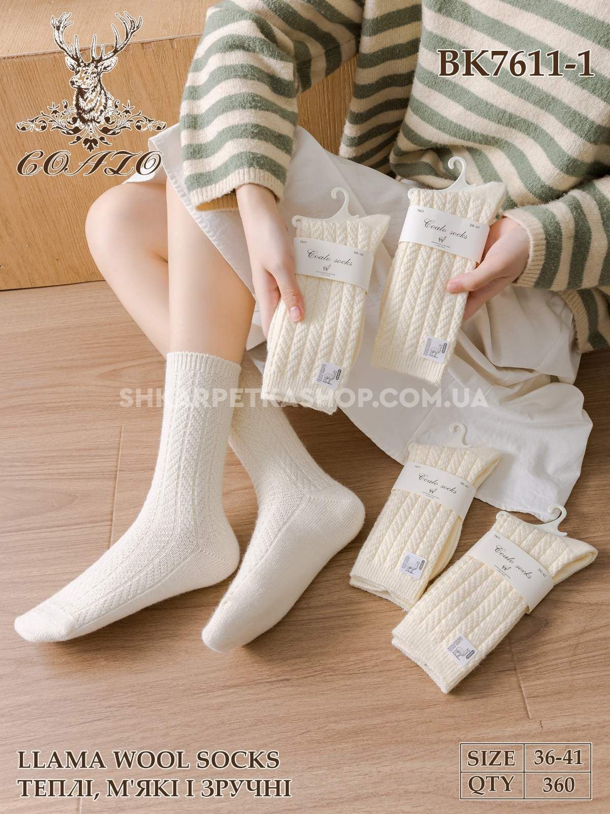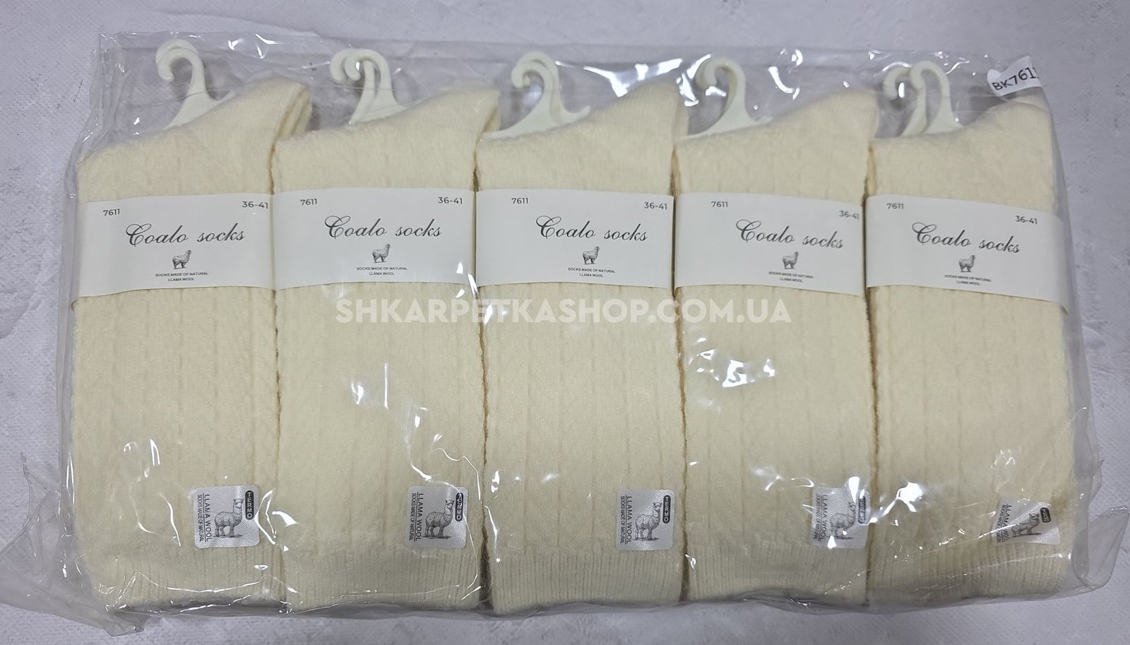 Шкарпетки "Coalo socks" ВК-7611-1 /(молочні) вовна лами /термо жіночі, р. 36-41 -асорті -(Молочні /однотонні з в'язаним рельєфним візерунком -дрібна косичка) -уп. 10 шт