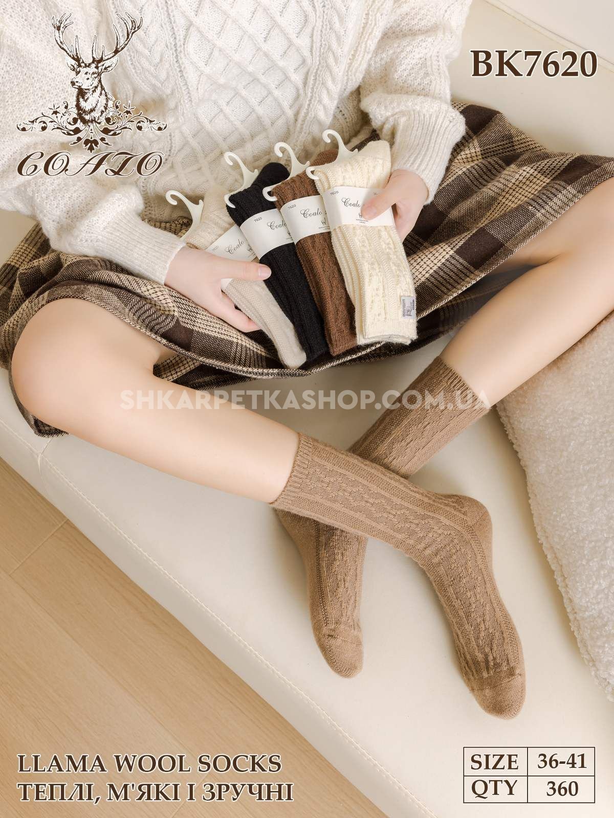 Шкарпетки "Coalo socks" ВК-7620 вовна лами /термо жіночі, р. 36-41 -асорті -(Однотонні з в'язаним рельєфним візерунком -широка косичка з ромбів між смужками) -уп. 10 шт