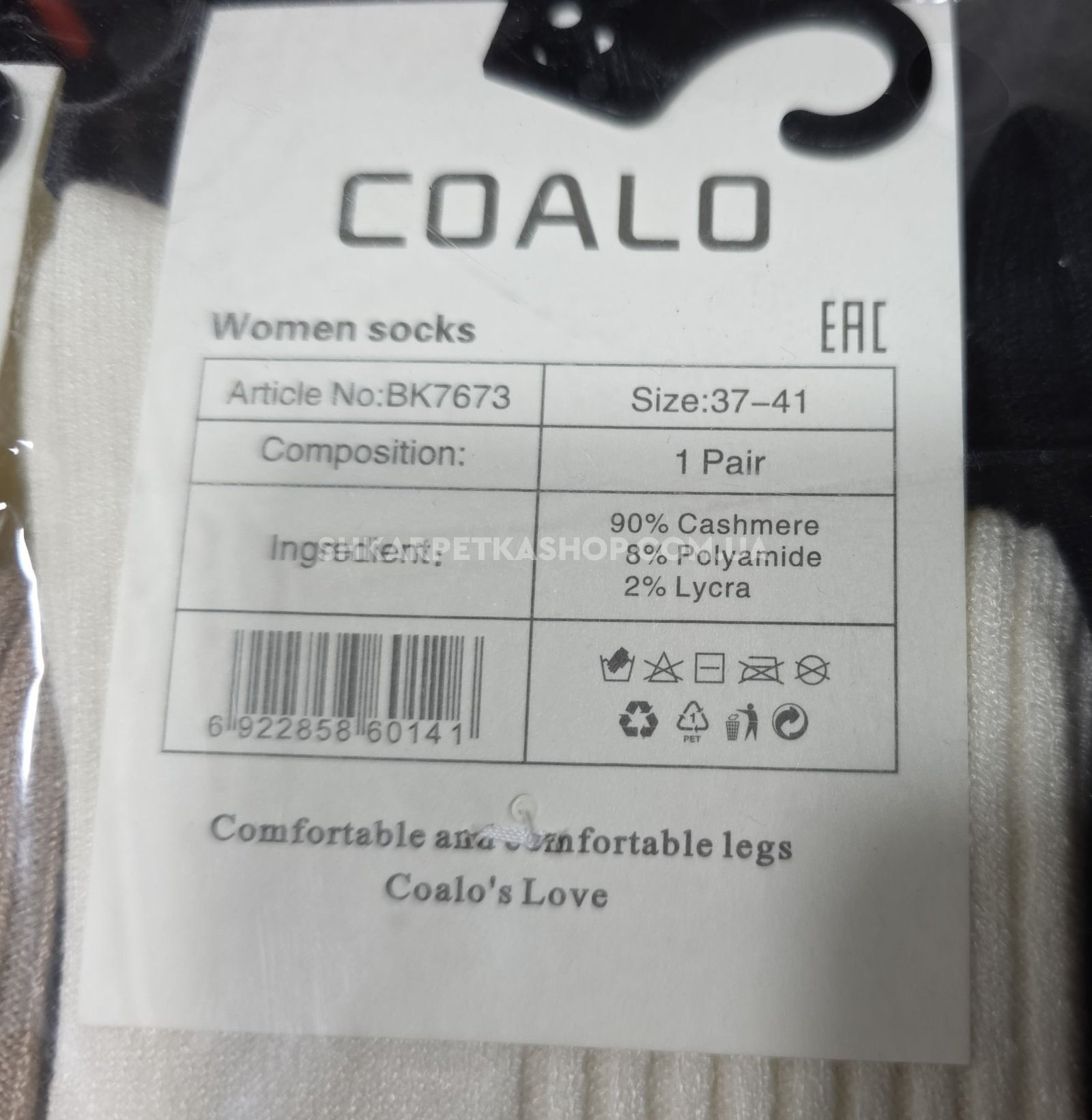 Шкарпетки "Coalo" ВК-7673 кашемір з начосом жіночі, р. 37-41 -асорті -(Високі/ однотонні в середній рубчик) -уп. 10 шт