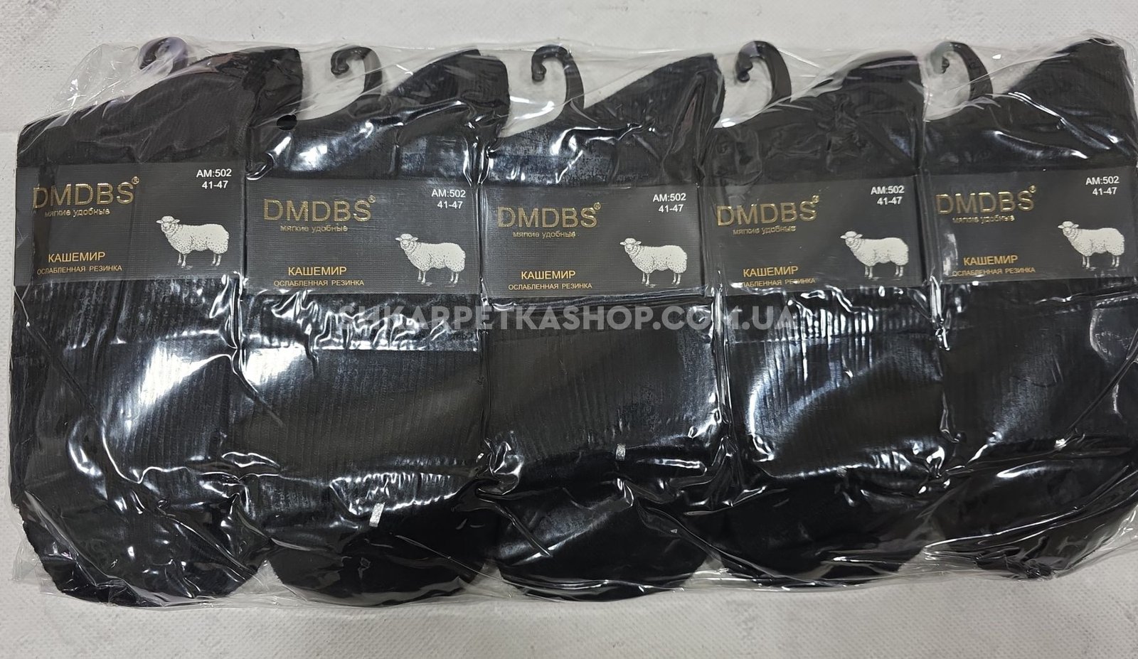 Шкарпетки "DMDBS" АМ-502 кашемір з ослабленою гумкою чоловічі, р. 41-47 -(Чорні в дрібний рубчик) -уп. 10 шт