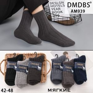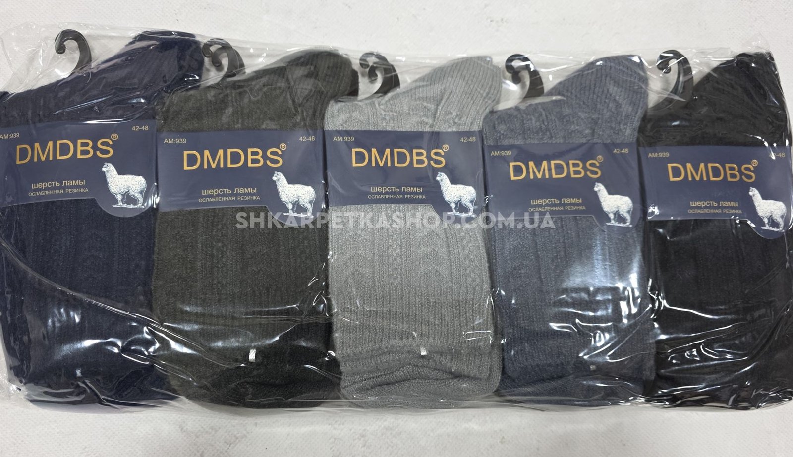 Шкарпетки "DMDBS" АМ-939 вовна лами +з ослабленою гумкою чоловічі, р. 42-48 -асорті -(Однотонні з рельєфним візерунком) -уп. 10 шт