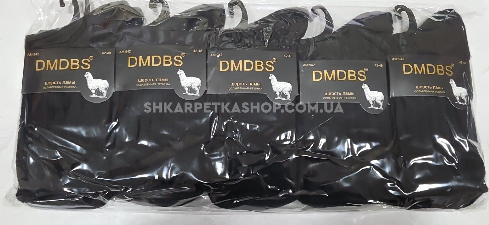 Шкарпетки "DMDBS" АМ-942 вовна лами чоловічі з ослабленою гумкою, р. 42-48 -(Чорні в рельєфний рубчик) -уп. 10 шт