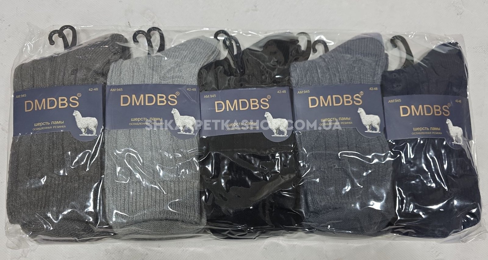 Шкарпетки "DMDBS" АМ-945 вовна лами +з ослабленою гумкою чоловічі, р. 42-48 -асорті -(Однотонні з рельєфним візерунком) -уп. 10 шт