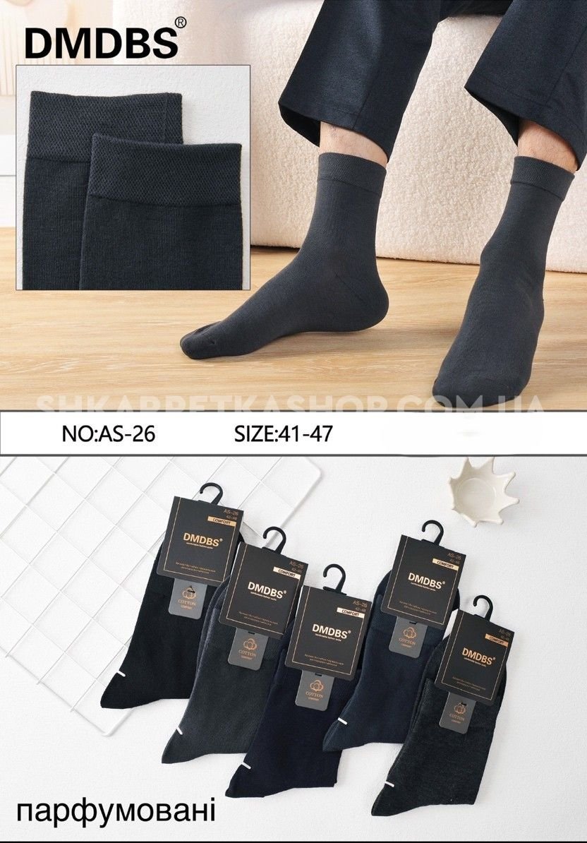 Шкарпетки "DMDBS" AS-26 стрейч /cotton ароматизовані чоловічі, р. 42-48 -(асорті /однотонні -класика) -уп. 10 шт (ас-26)
