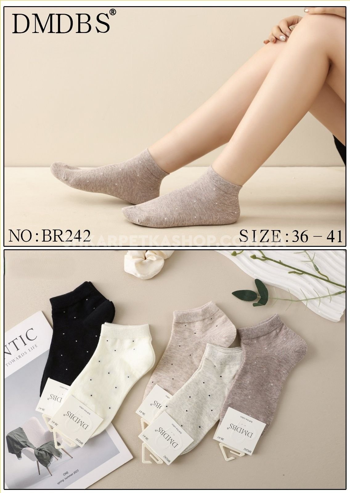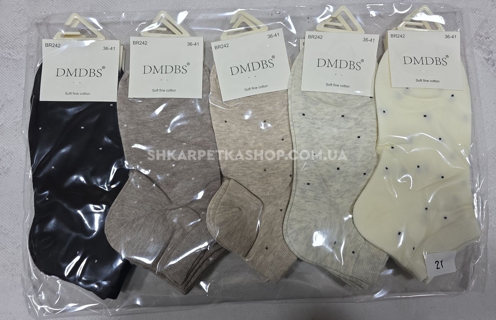 Шкарпетки "DMDBS" BR-242 стрейч /cotton жіночі, р. 36-41 -асорті -(короткі /меланжеві +однотонні в дрібну крапку) - уп. 10 шт