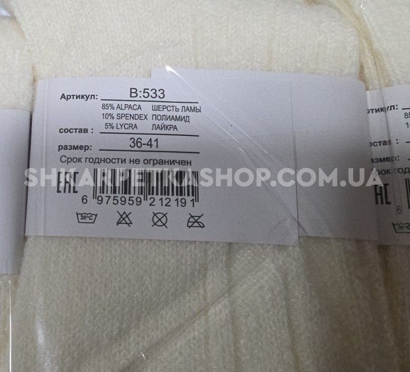 Шкарпетки "DMDBS" В-533-Ш вовна лами жіночі, р. 36-41 -(Високі /молочні з різними мікс візерунками) -уп. 10 шт