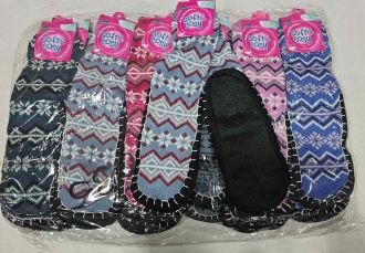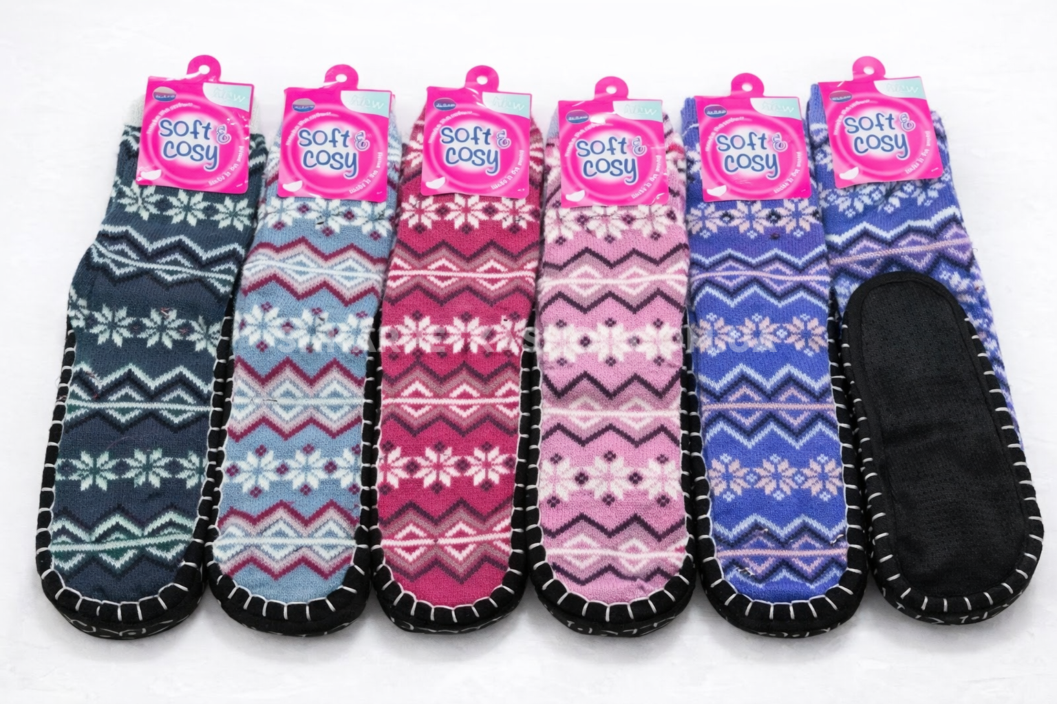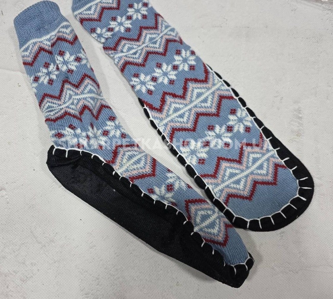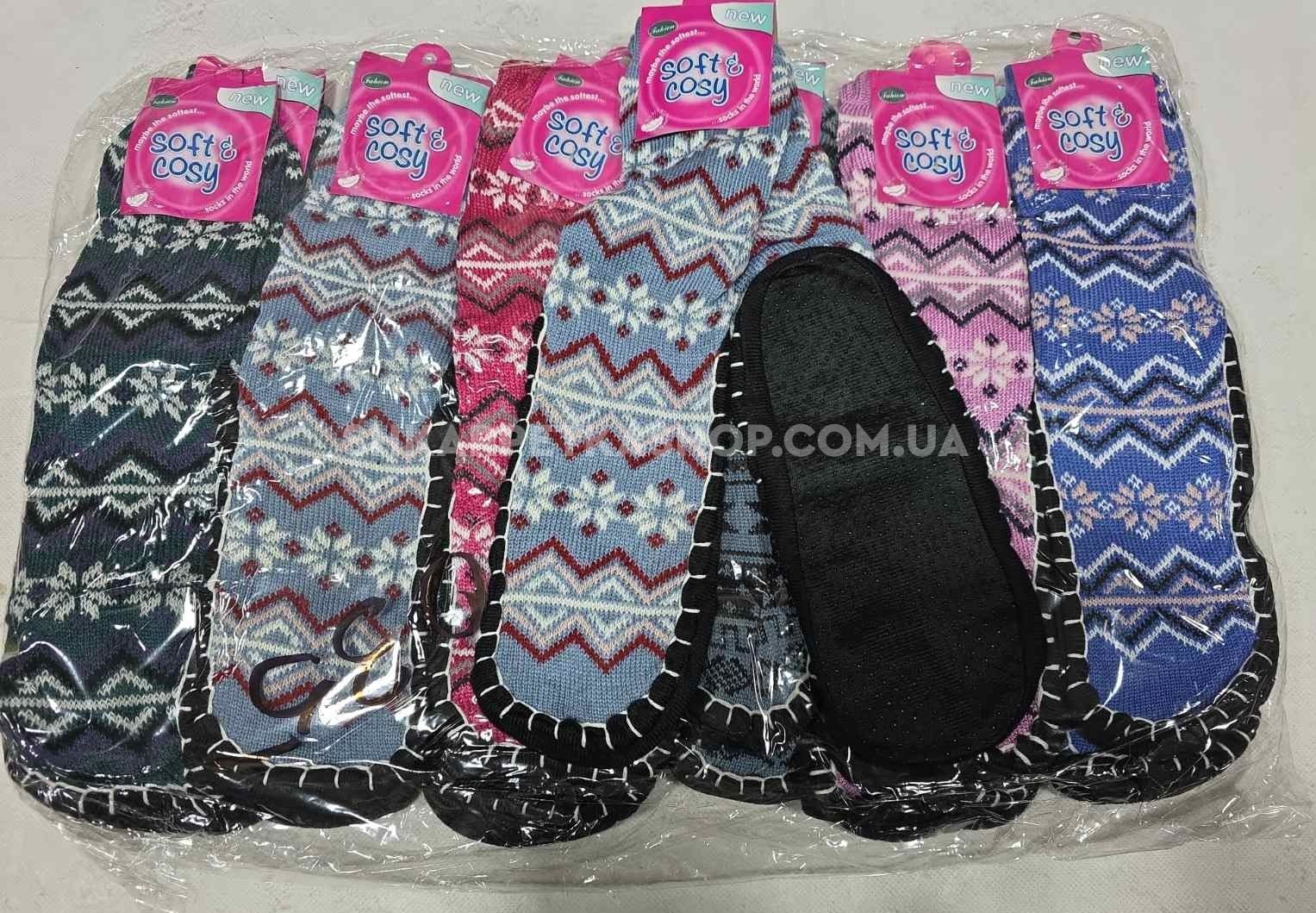 Шкарпетки домашні "Soft & cosy" G-035 подвійні +на підошві силіконові гальма, р. 36-41 -асорті -(Високі в'язані з орнаментом та чорною підошвою) -уп. 12 шт