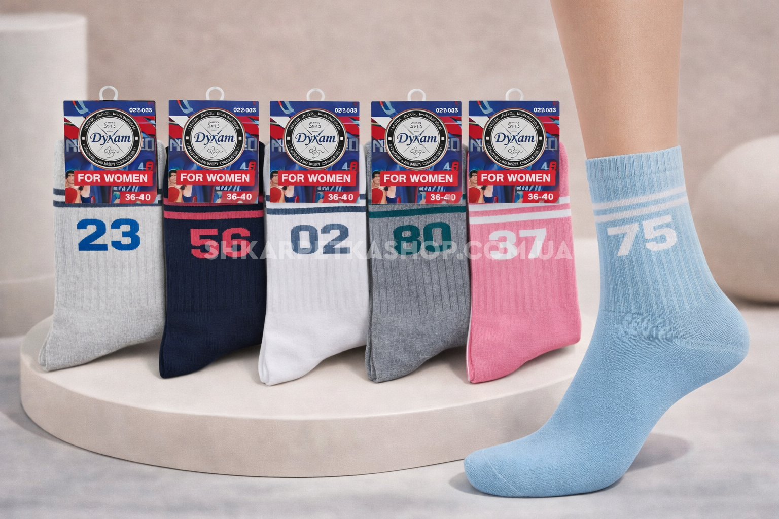 Шкарпетки "Дукат" 564-122 стрейч жіночі, р. 36-40 - асорті -(на гумці в рубчик великі цифри + смужки -жіночі) -уп. 12 шт