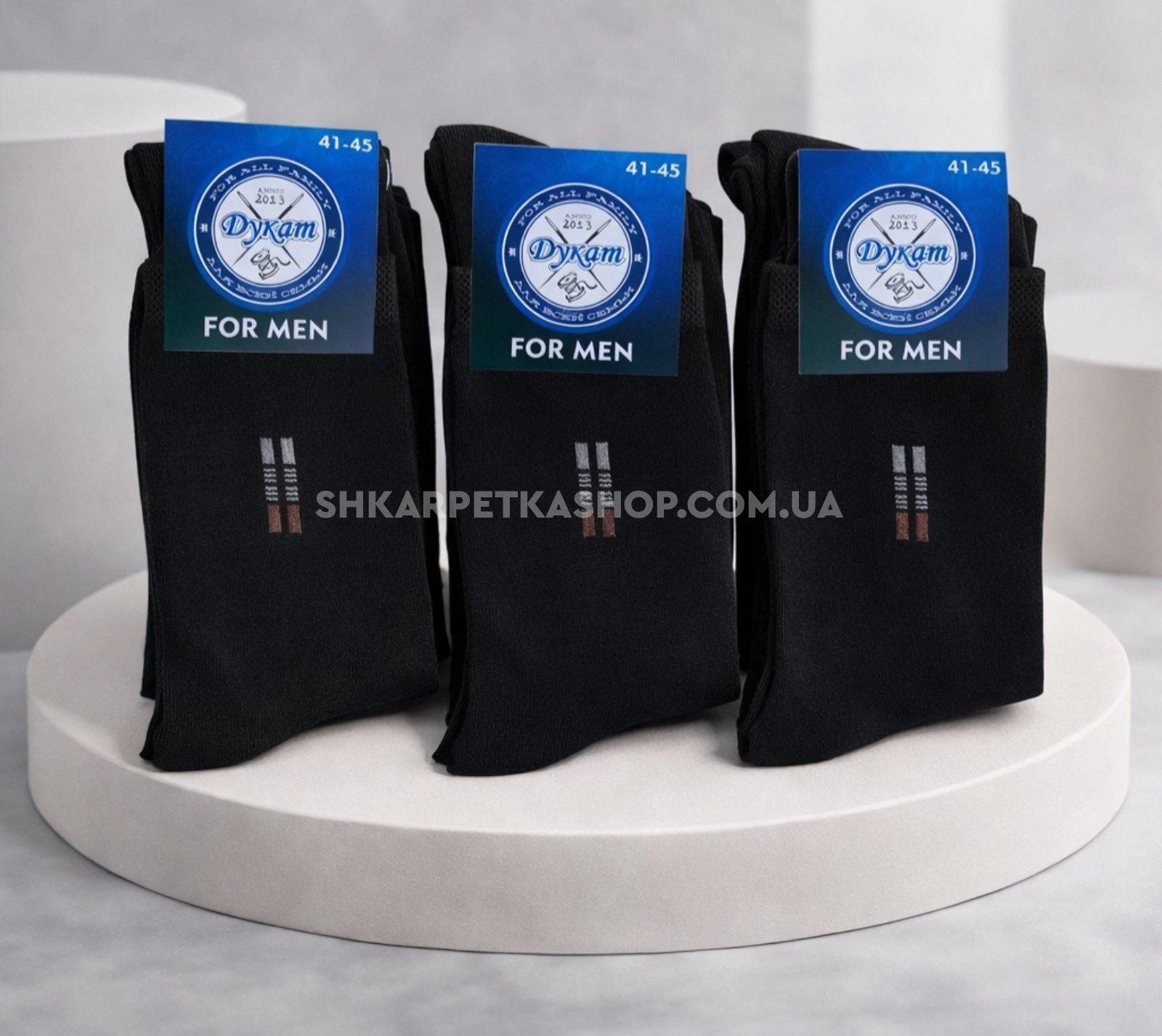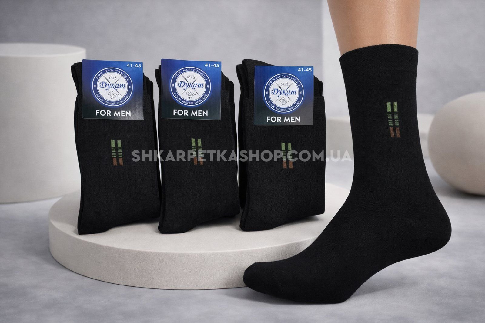 Шкарпетки "Дукат-FOR MEN" С419-2 стрейч "класика" чоловічі -(синя етикетка) р. 41-45 -(чорні +збоку дві смужки у довжину -стрейч)- уп. 12 шт
