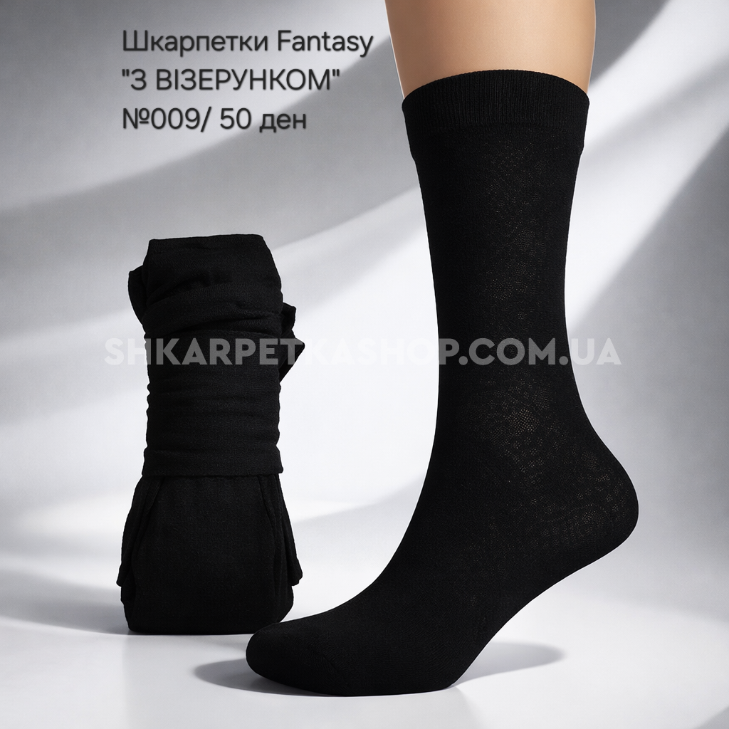 Шкарпетки Fantasy "З ВІЗЕРУНКОМ" №009/ 50 ден капронові з візерунком -уп.10 пар -(чорні)