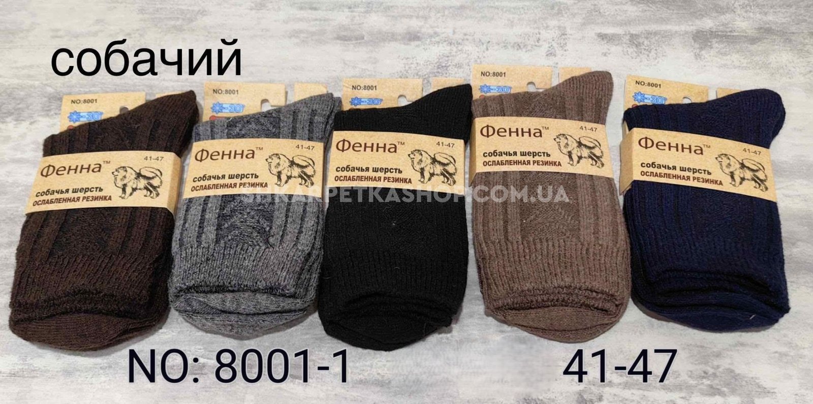Шкарпетки "Фенна" 8001-1 термо собача вовна "з ослабленою гумкою" чоловічі, р. 41-47 -(асорті /меланжеві в рубчик з в'язаним візерунком) -уп. 12 шт