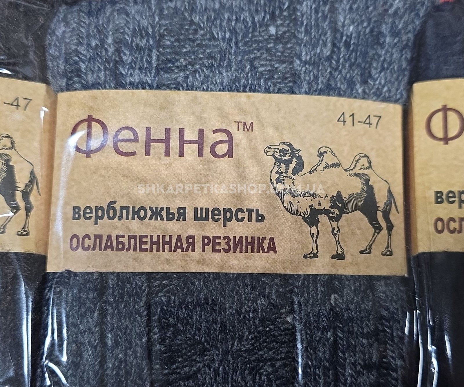 Шкарпетки "Фенна" 8005-9 термо верблюжя вовна "з ослабленою гумкою" чоловічі, р. 41-47 -(асорті /меланжеві в рубчик з в'язаним візерунком) -уп. 12 шт
