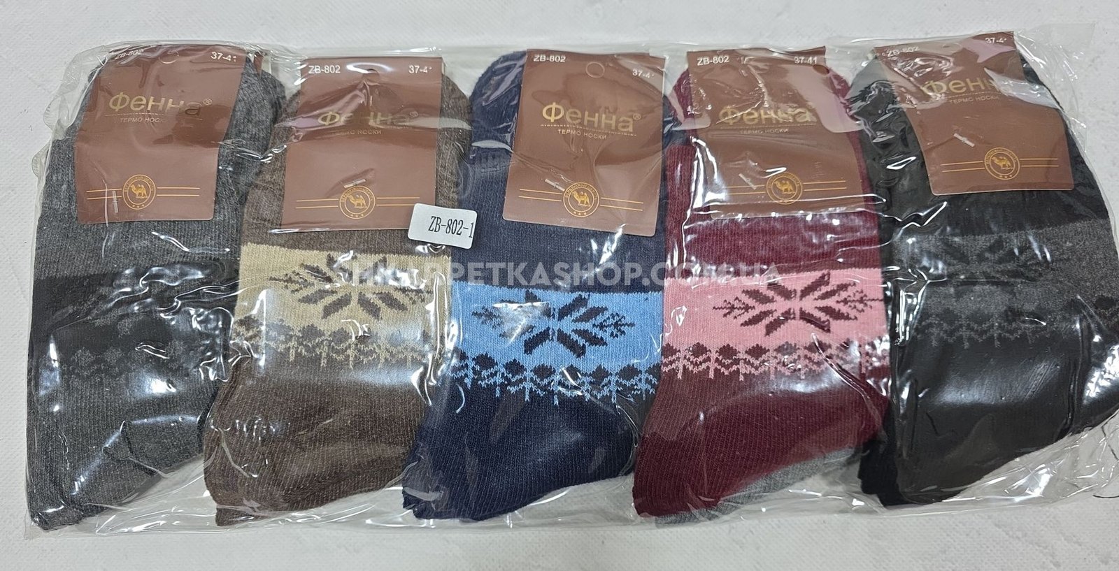Шкарпетки "Фенна" 802-1 термо верблюжа вовна жіночі, р. 37-41 -асорті -(Однотонні +під гумкою вставка з орнаментом та великою сніжинкою) -уп. 10 шт