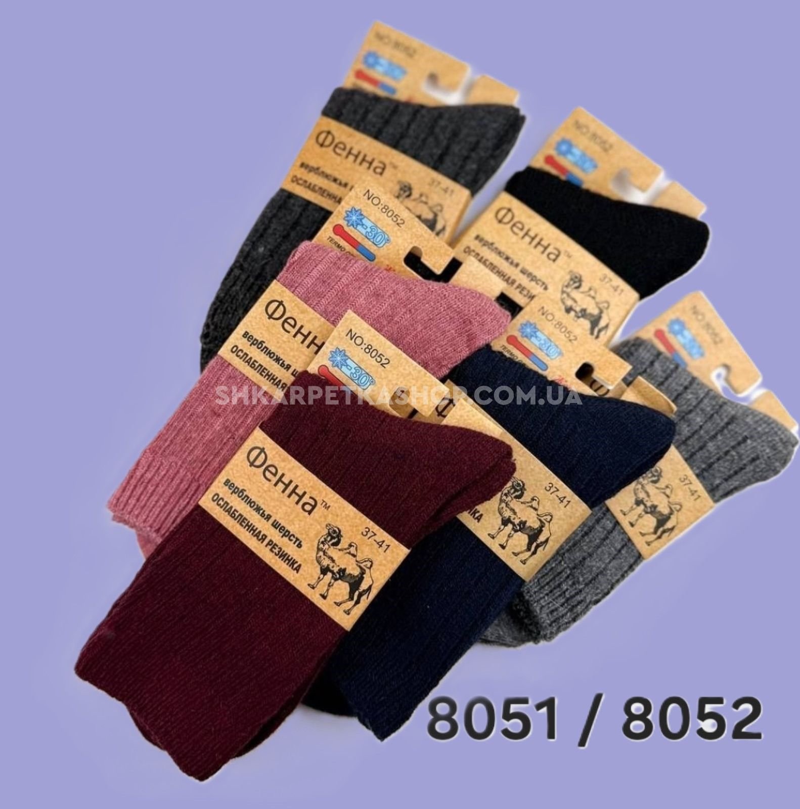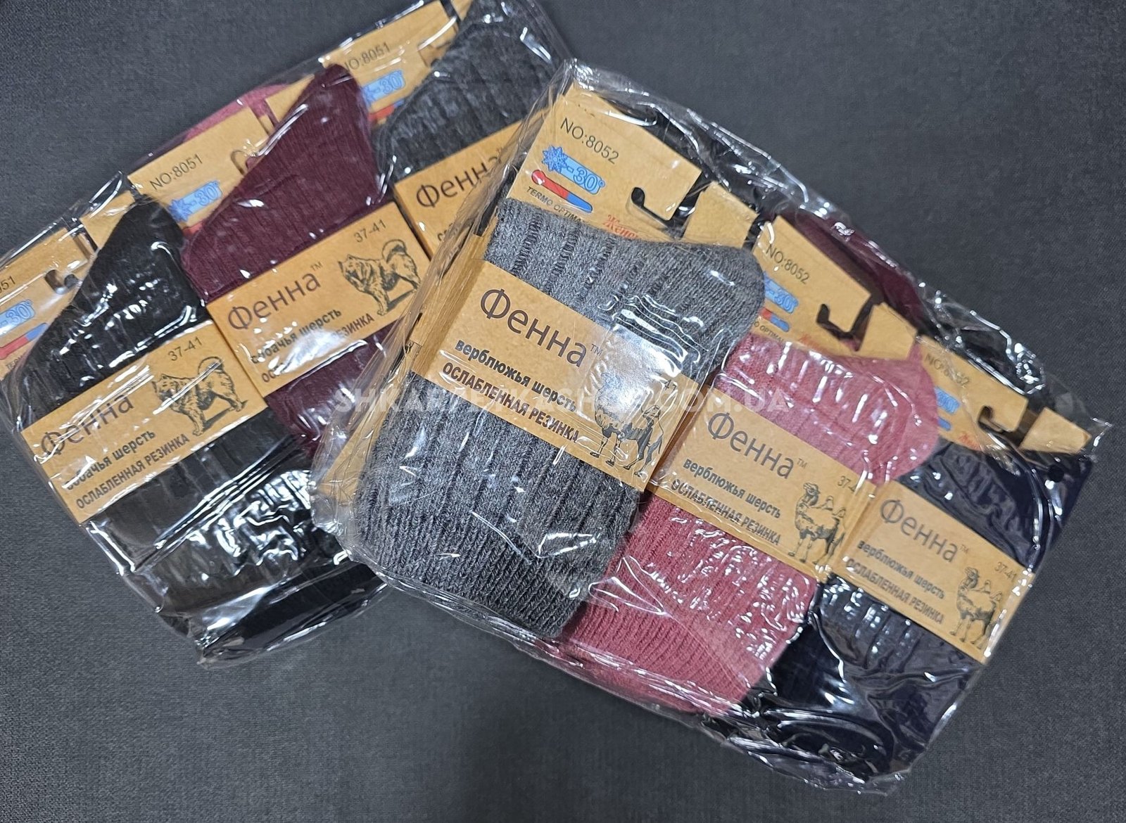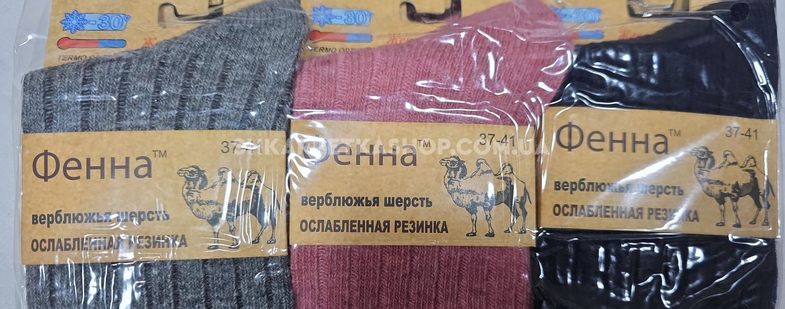 Шкарпетки "Фенна" 8051 /8052 термо верблюжа вовна "з ослабленою гумкою" жіночі, р. 37-41 -(асорті /однотонні в рубчик) -уп. 12 шт