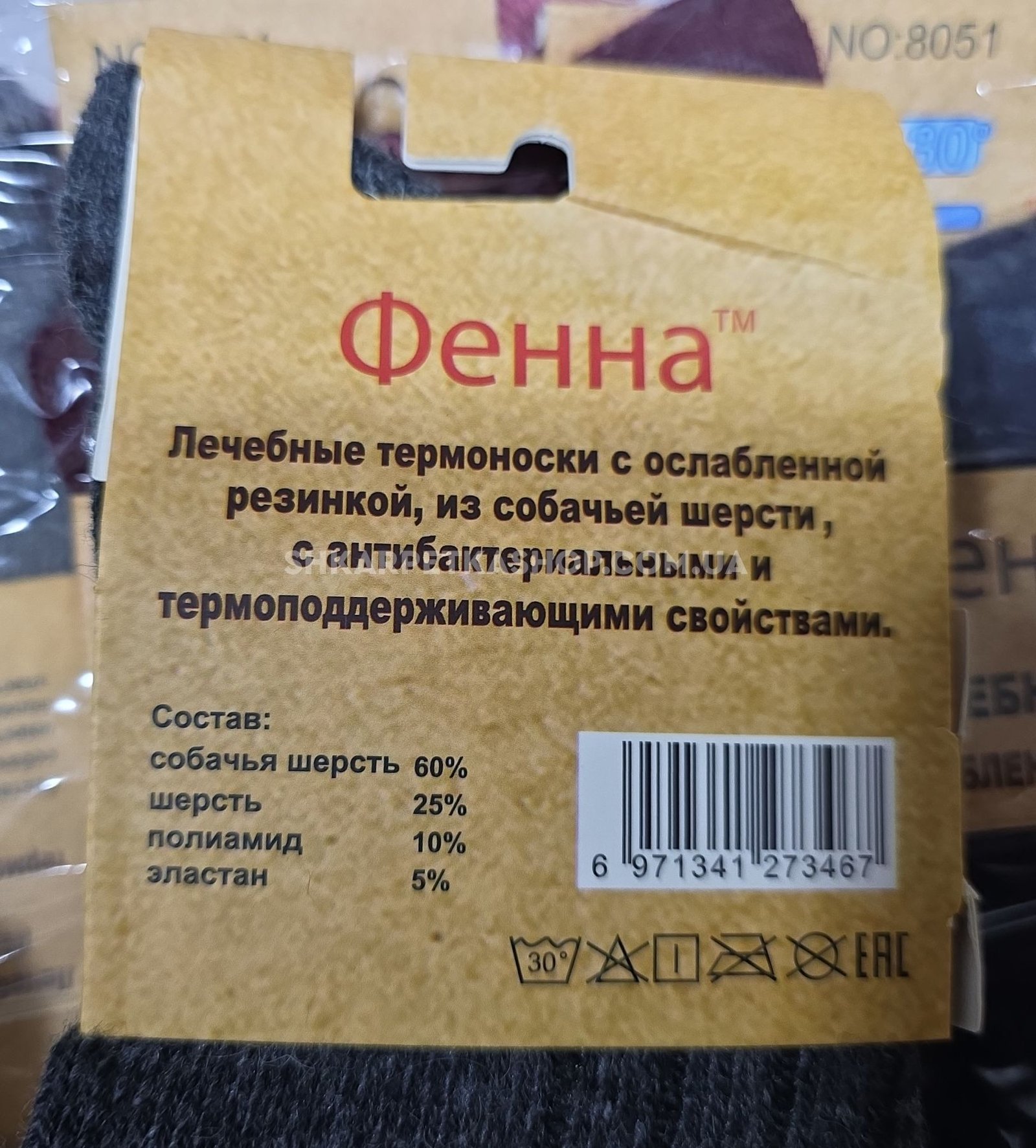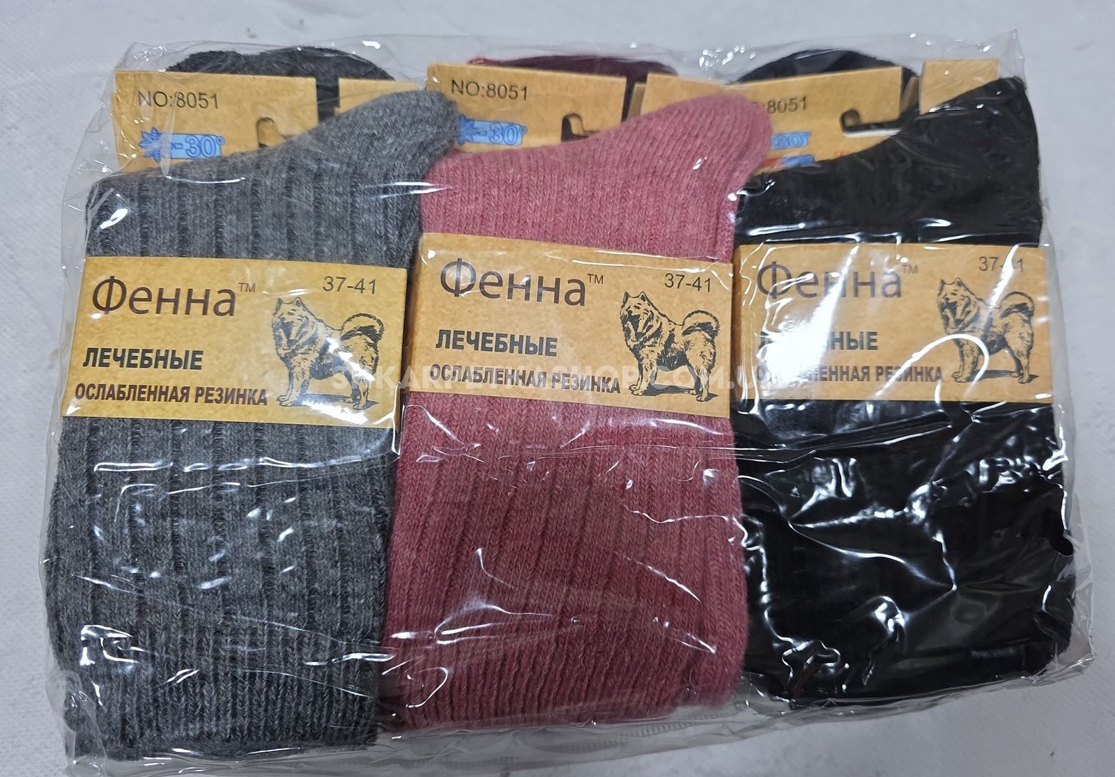 Шкарпетки "Фенна" 8051 термо собача вовна "з ослабленою гумкою" жіночі, р. 37-41 -(асорті /однотонні в рубчик) -уп. 12 шт