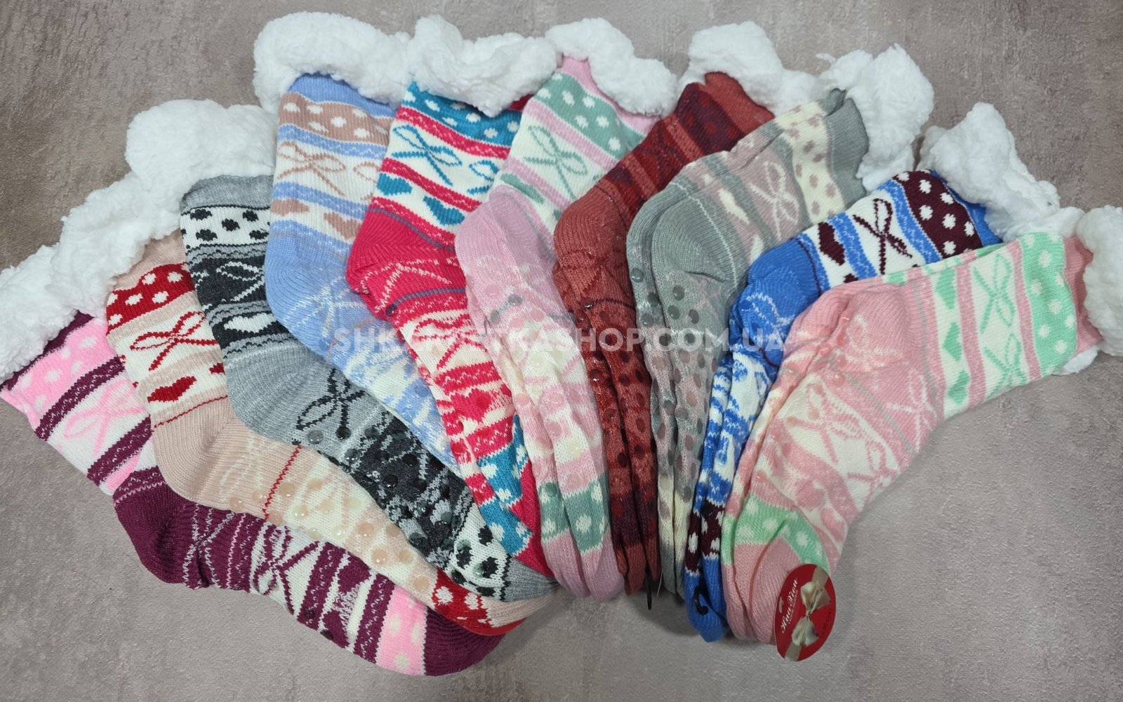 Шкарпетки-валянки "HuaXiou" 8855 термо домашні на товстому хутрі з гальмами на підошві жіночі, р. 36-41 -випадкове асорті -(Бантики, серця, горошки) -уп 12 шт
