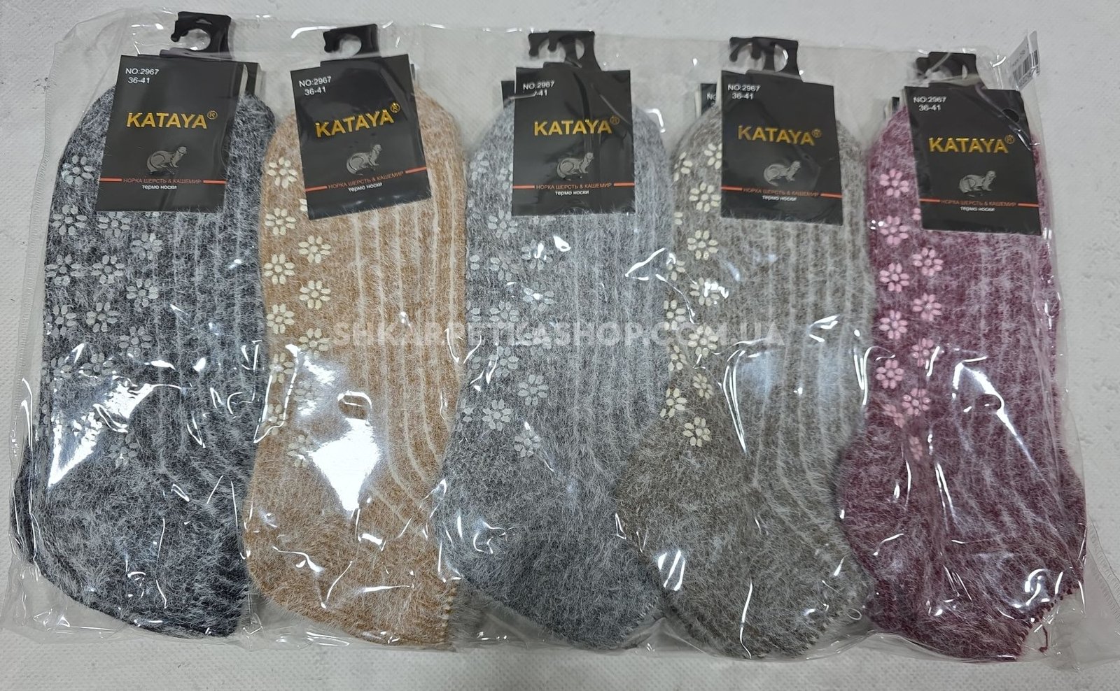 Шкарпетки "KATAYA" 2967-1 термо норка кашемір жіночі, р. 36-41 -асорті -(Короткі /меланжевий мікс у рубчик +з гальмами на підошві) -уп. 10 шт