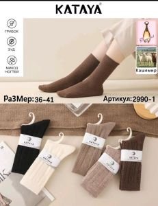 Шкарпетки "KATAYA" 2990-1 кашемір +овеча вовна парфумовані жіночі, р. 36-41 -(Високі /однотонні з рельєфним візерунком) -уп. 10 шт
