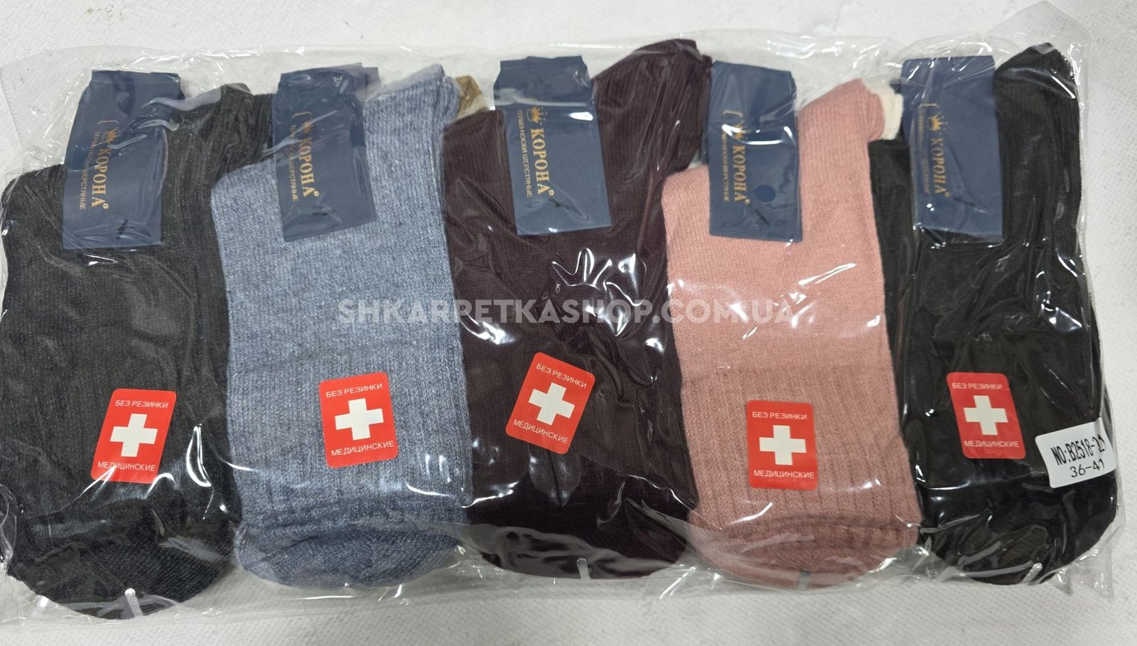Шкарпетки "КОРОНА" 2518-21 термо вовна жіночі "Медичні без резинки +", р. 36-41 -асорті -(б/р -однотонні +широка ослаблена гумка в рубчик) -уп. 12 шт