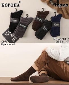 Шкарпетки "КОРОНА" А-1201-2 альпака вовна чоловічі, р. 41-47 -(асорті -однотонні однотонні в рельєфний рубчик) -уп. 10 шт