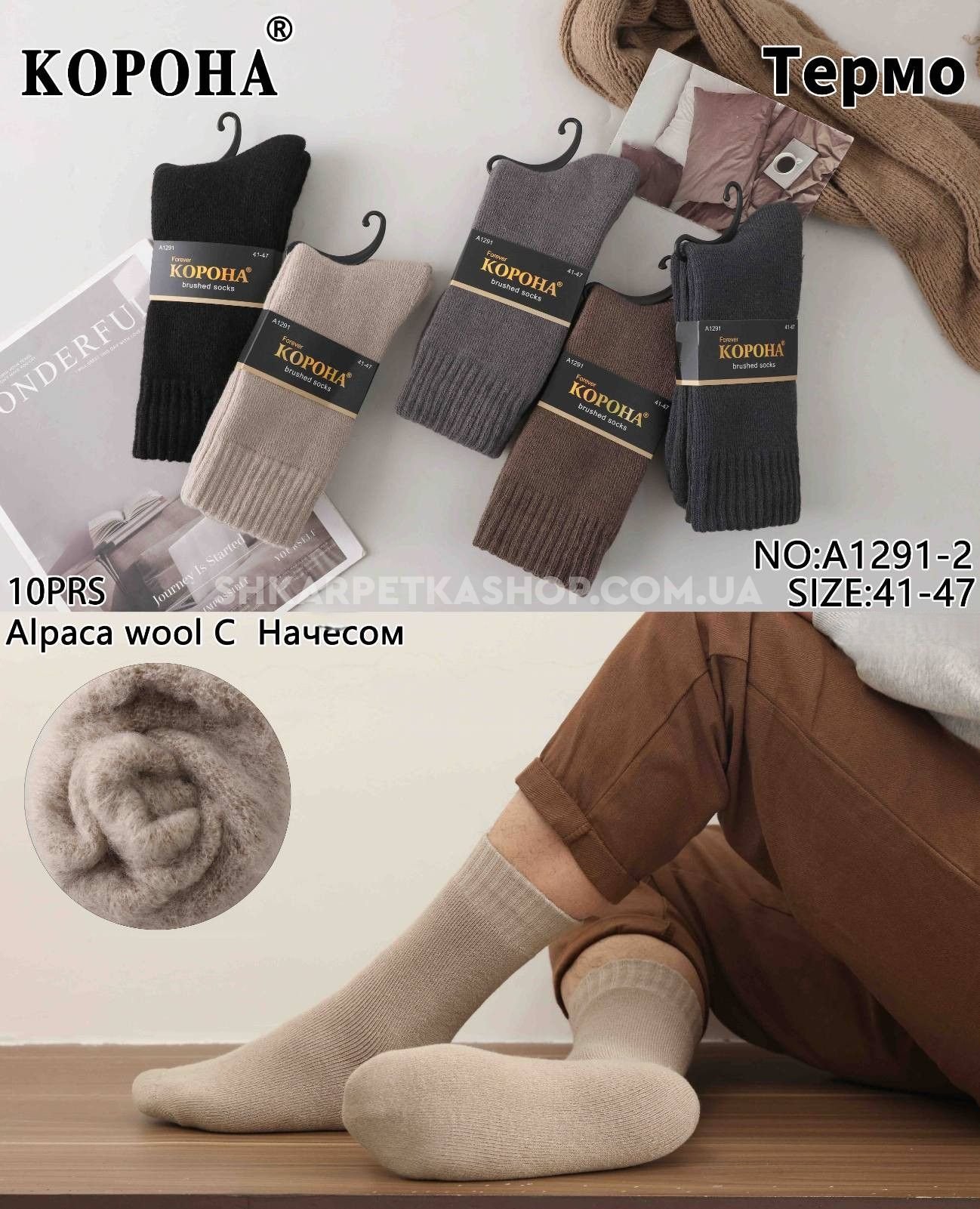 Шкарпетки "КОРОНА" А-1291-2 альпака вовна на махрі з начосом чоловічі, р. 41-47 асорті -(Однотонні) -уп. 12 шт