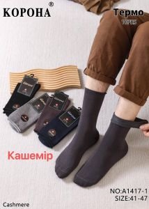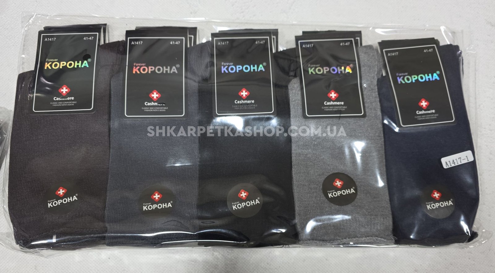 Шкарпетки "КОРОНА" А-1417-1 кашемір з ослабленою гумкою (без резинки) чоловічі, р. 41-47 асорті -(Б/р -однотонні) -уп. 10 шт