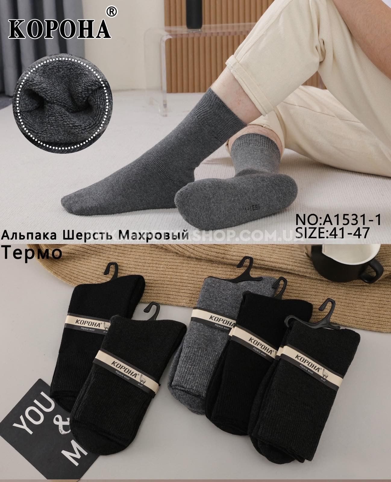 Шкарпетки "КОРОНА" А-1531-1 альпака вовна на махрі чоловічі, р. 41-47 -(асорті -однотонні) -уп. 10 шт
