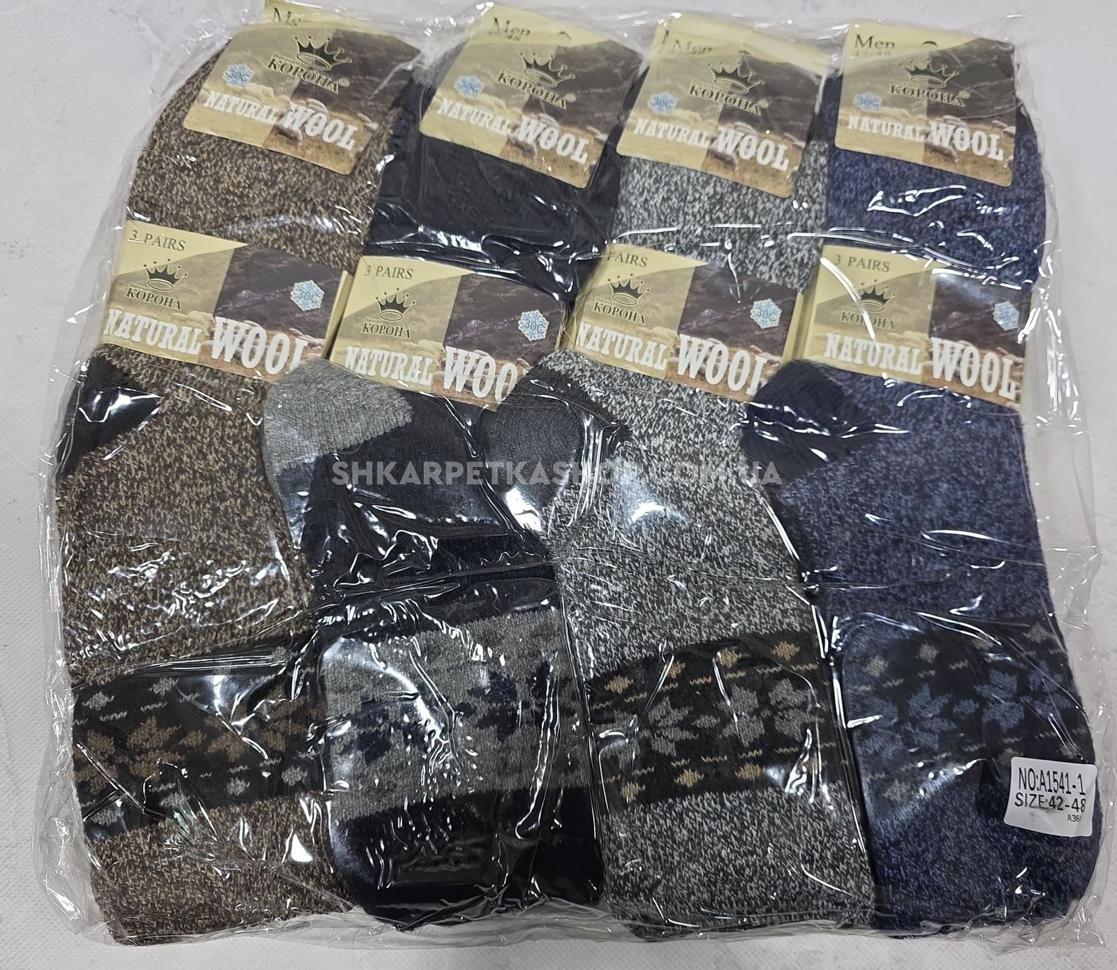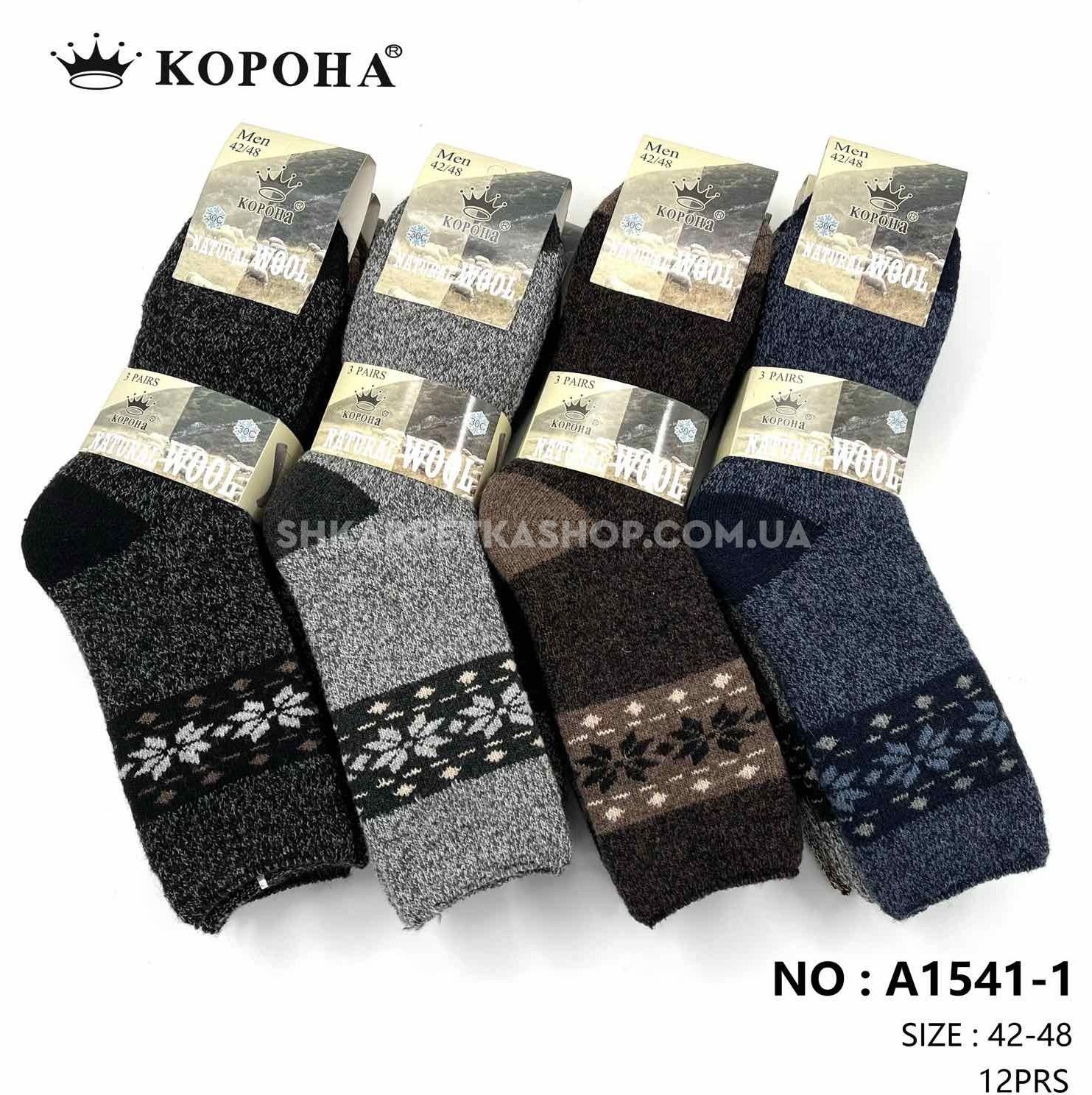 Шкарпетки "КОРОНА" А-1541-1 термо ангора вовна на махрі чоловічі, р. 42-48 асорті -(Меланжеві в'язані +під гумкою орнамент з крижинок-чол.) -уп. 12 шт