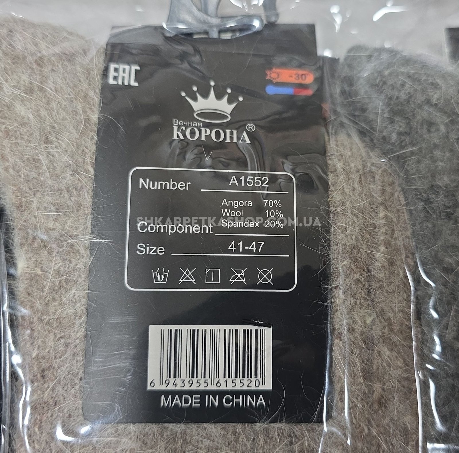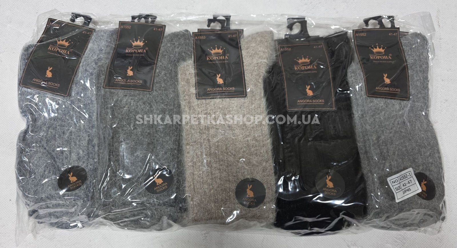 Шкарпетки "КОРОНА" А-1552-1 ангора вовна чоловічі, р. 41-47 -асорті -(Однотонні в рубчик з пухнастою ниткою) -уп. 10 шт