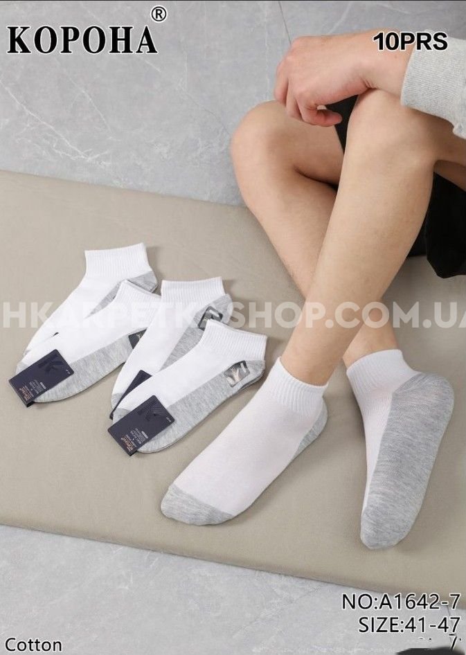 Шкарпетки "Корона" A-1642-7 стрейч/ cotton чоловічі, р. 41-47 -(Укорочені +білий верх +сіра підошва +укорочена гумка в рубчик -чоловічі) -уп. 10 шт