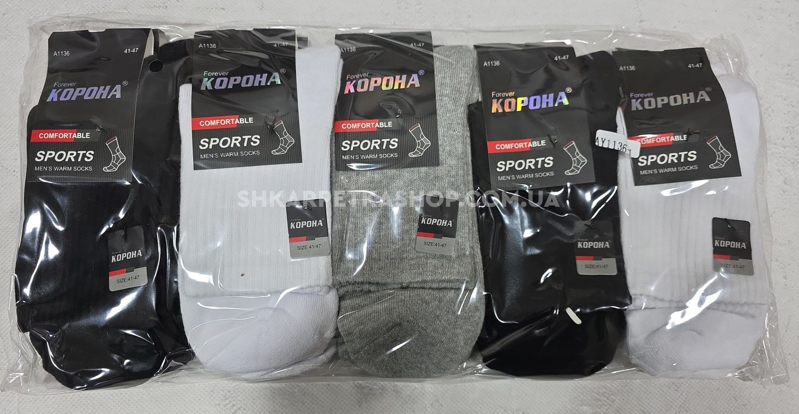 Шкарпетки "Корона" АY-1136-1 термо напівмахрові /махрова стопа чоловічі, р. 41-47 -асорті -(Теніс термо/однотонні +з високою гумкою в рубчик +махрова підошва /стопа -чол.) -уп. 10 шт.