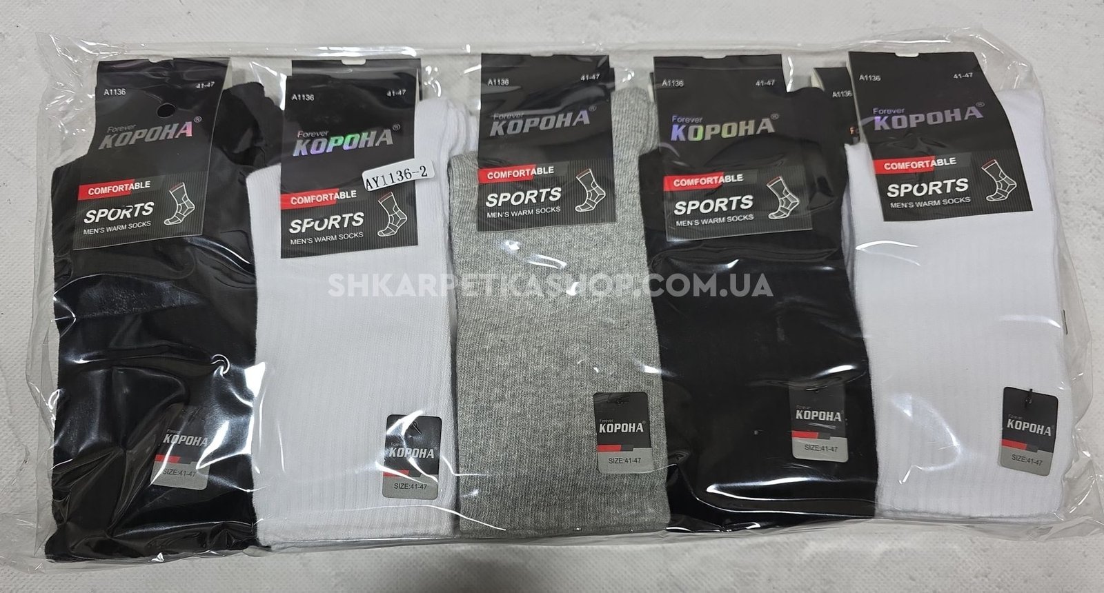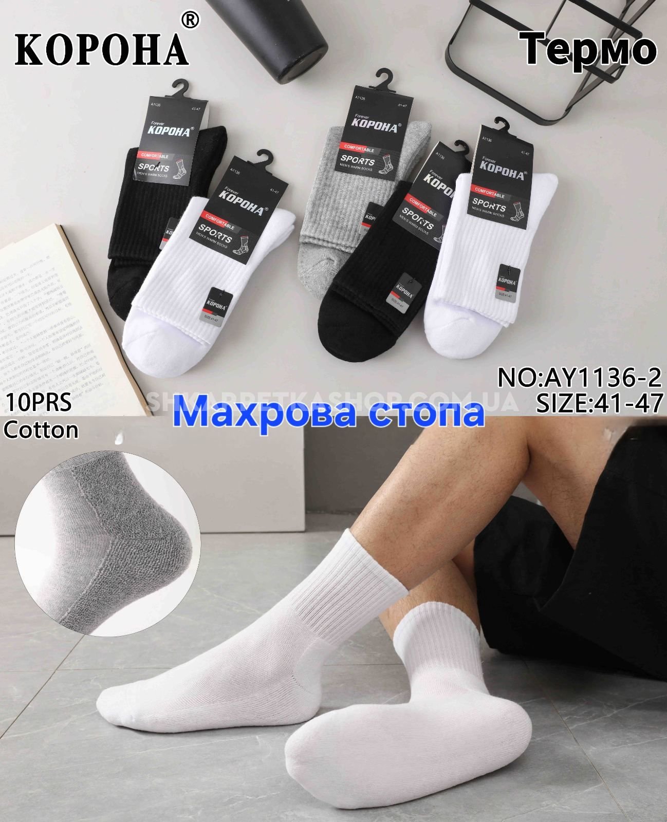 Шкарпетки "Корона" АY-1136-2 термо напівмахрові /махрова стопа чоловічі, р. 41-47 -асорті -(Теніс /Однотонні +з широкою гумкою в рубчик +махрова підошва /стопа -чол.) -уп. 10 шт.