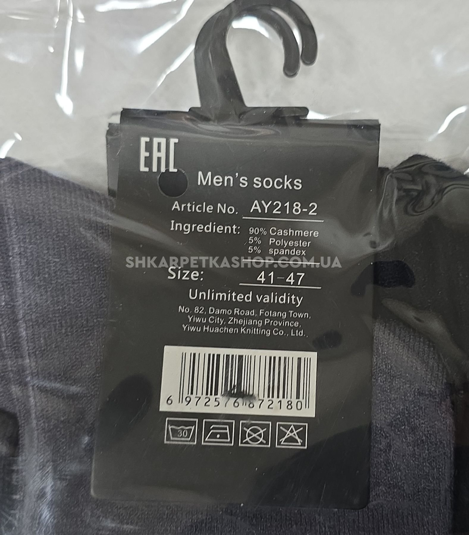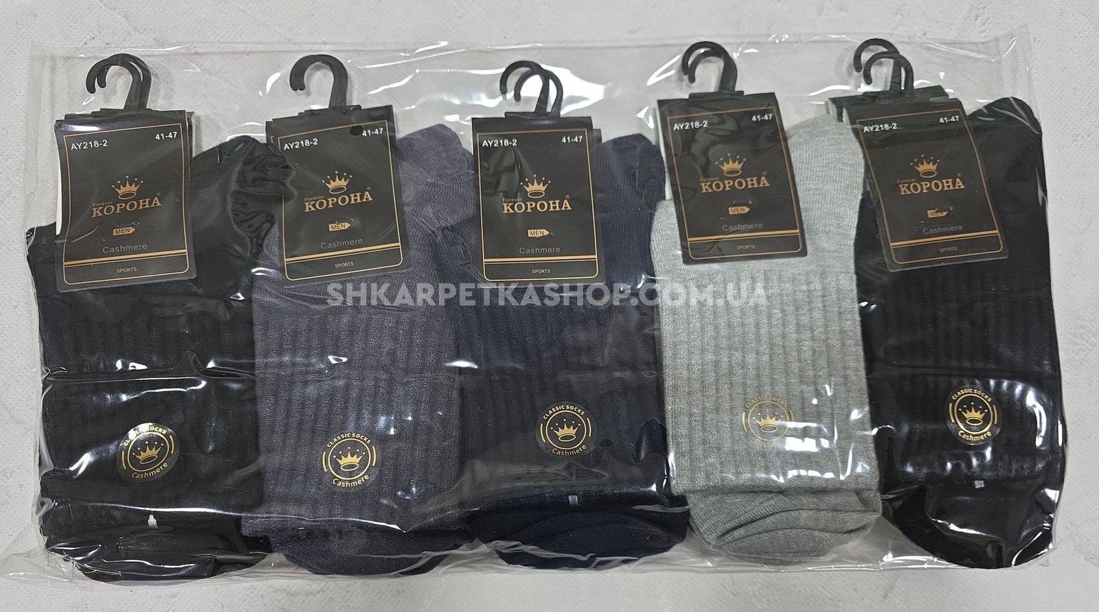 Шкарпетки "Корона" AY-218-2 термо кашемір чоловічі, р. 41-47 -асорті -(Однотонні з широкою гумкою в рубчик) -уп. 10 шт