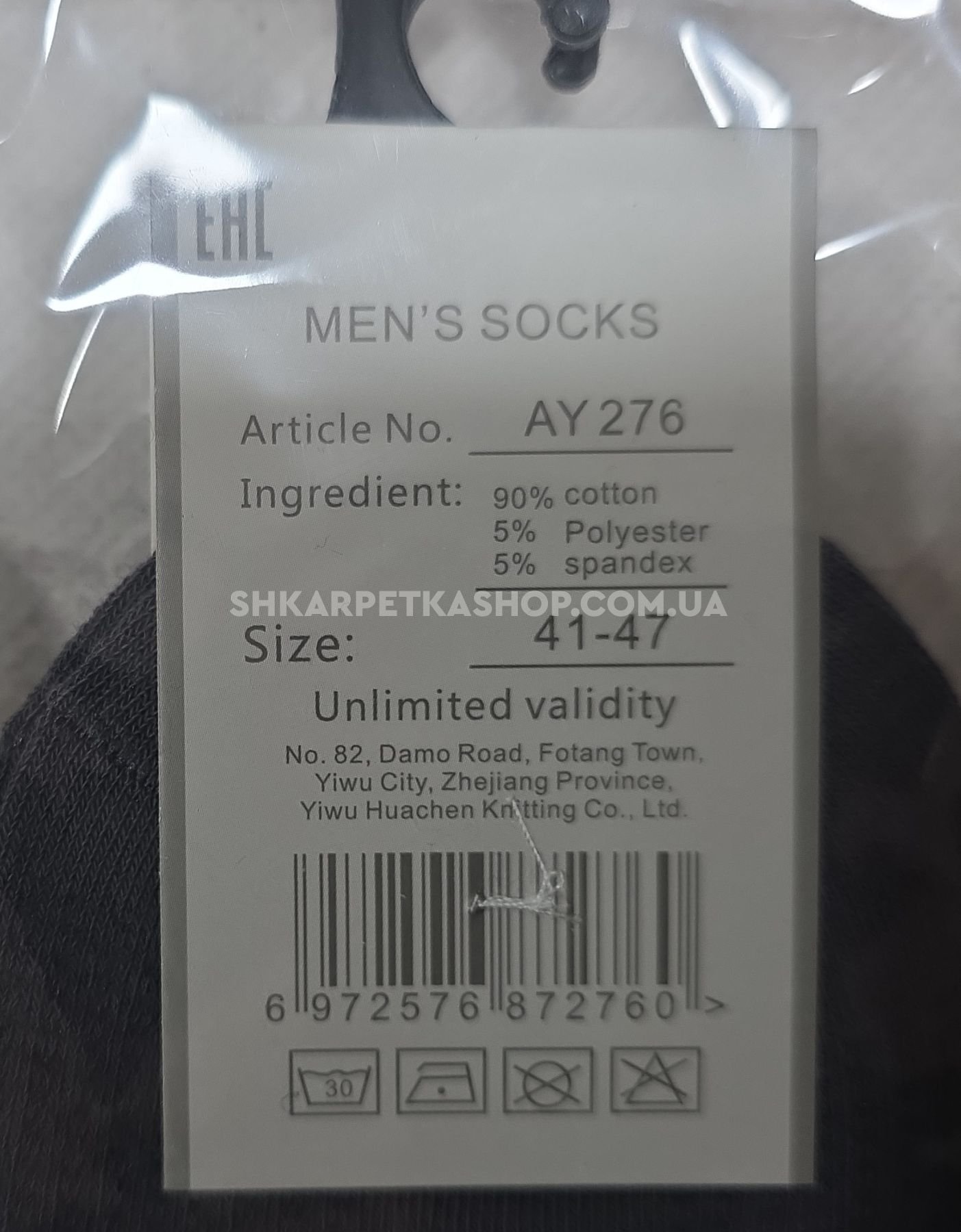 Шкарпетки "Корона" АY-276-1 сітка/ cotton чоловічі, р. 41-47 -асорті -(Сіточка -короткі -однотонні + збоку напис) -уп. 10 шт