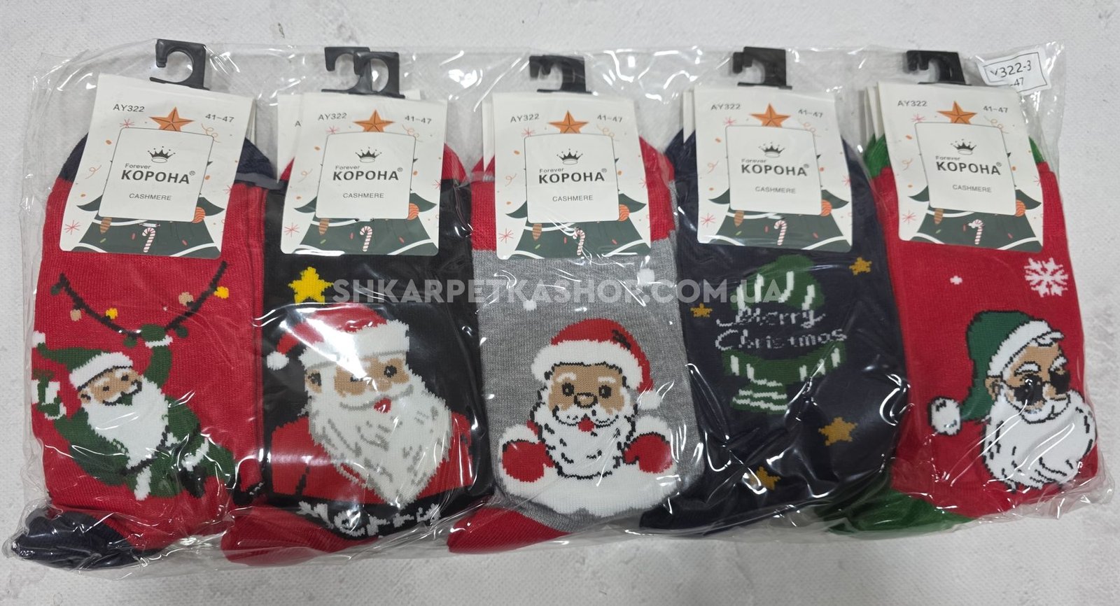 Шкарпетки "Корона" АY-322-3 термо кашемір чоловічі, р. 41-47 -асорті -(Високі /асорті +мікс новорічних малюнків -чол.) -уп. 10 шт