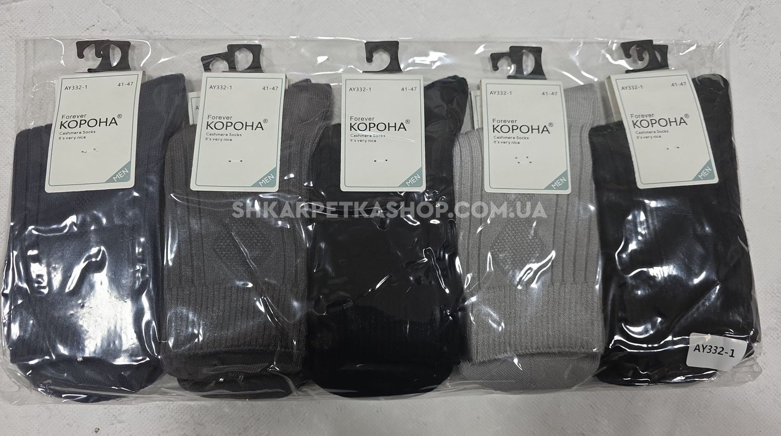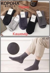 Шкарпетки "Корона" AY-332-1 термо кашемір чоловічі, р. 41-47 -асорті -(Однотонні +збоку рельєфний візерунок з ромбів +рубчик) -уп. 10 шт