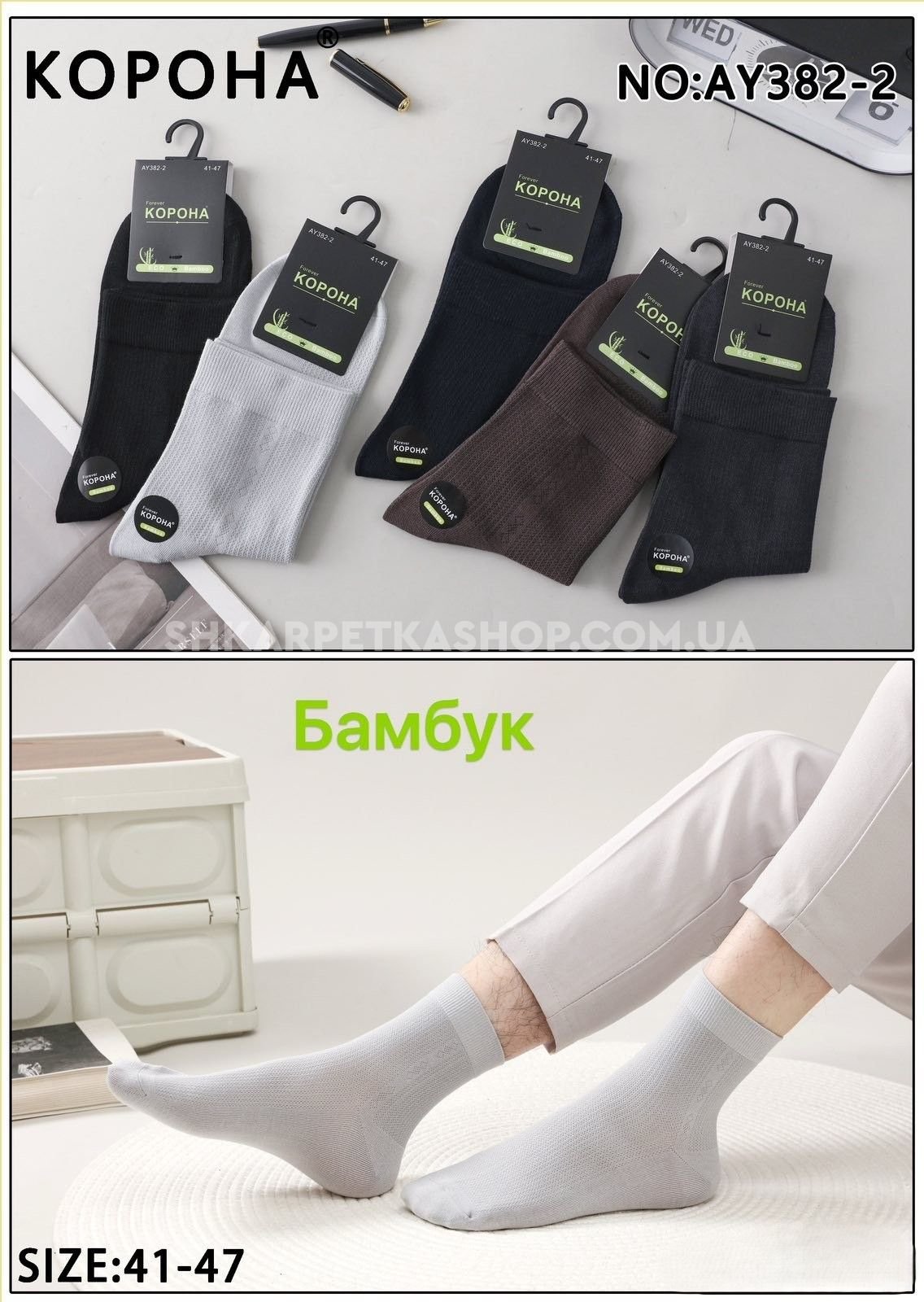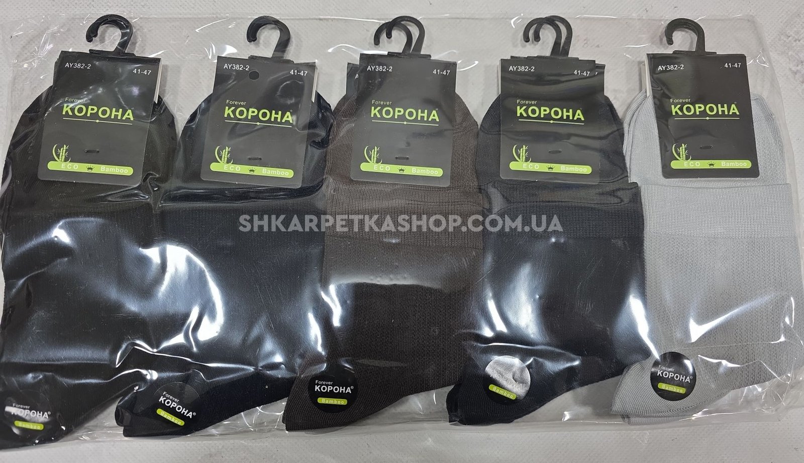 Шкарпетки "Корона" AY-382-2 стрейч /еко бамбук чоловічі, р. 41-47 -(Однотонні /класика з сітчастою в'язкою +збоку вставка з однотонним візерунком) -уп. 10 шт.