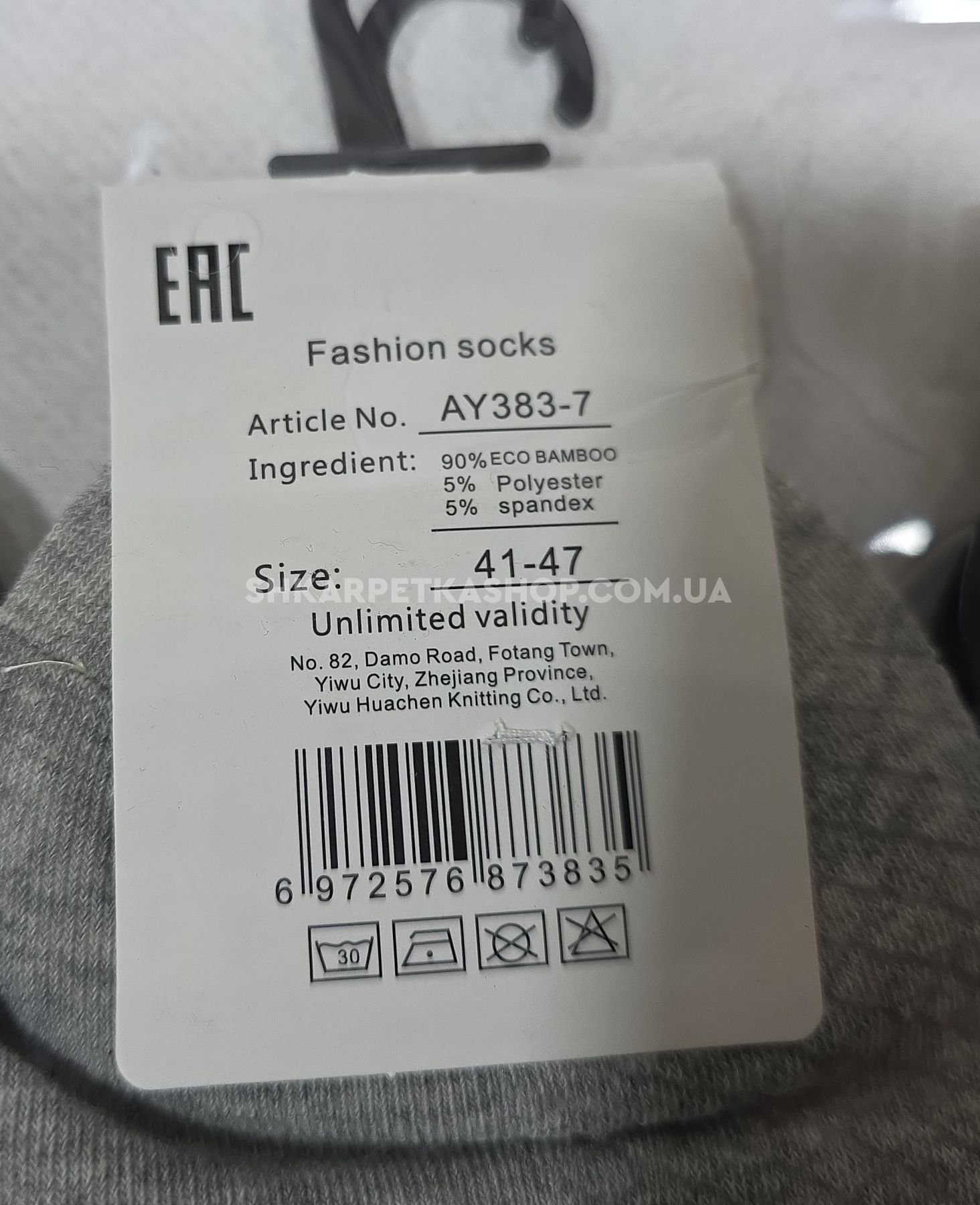 Шкарпетки "Корона" AY-383-7 стрейч /бамбук чоловічі, р. 41-47 -асорті -(Однотонні +широка гумка в рубчик +посередині резинка фіксатор) -уп. 10 шт