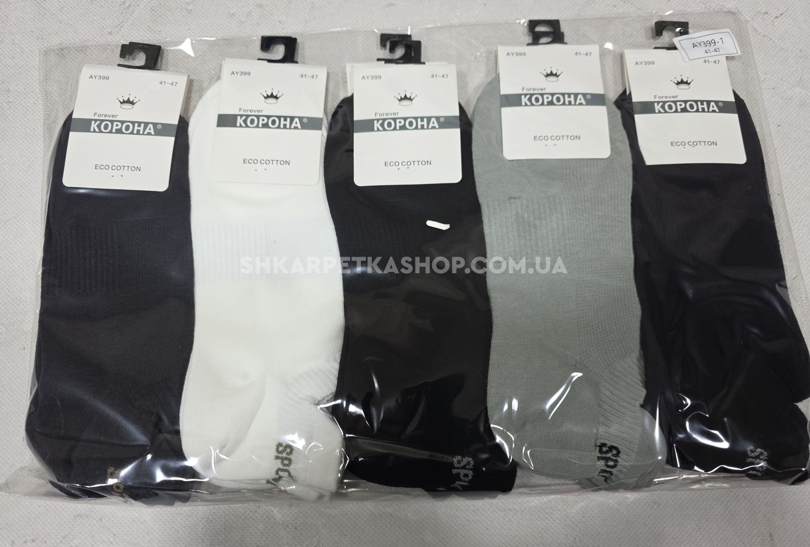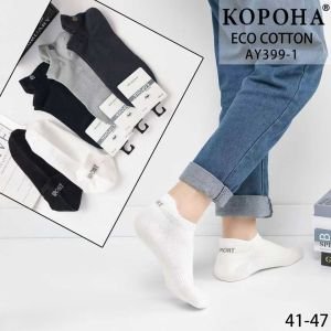 Шкарпетки "Корона" AY-399-1 стрейч/eco cotton чоловічі, р. 41-47 -асорті -(Короткі /однотонні +ззаду з виступом та написом Sport +з гумкою фіксатором посередині) -уп. 10 шт