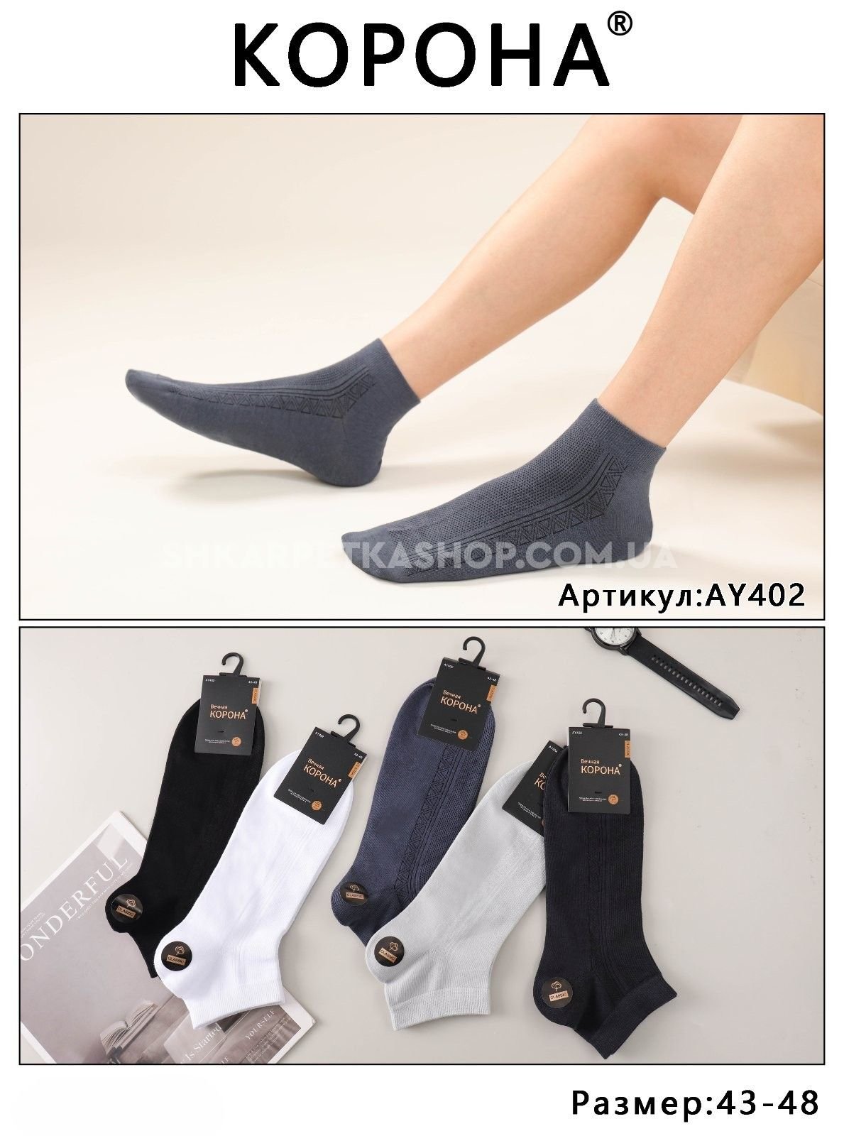 Шкарпетки "Корона" АY-402 сітка/cotton чоловічі, р. 43-48 -асорті -(Сіточка -укорочені /однотонні +з боків однотонний візерунок у довжину) -уп. 10 шт