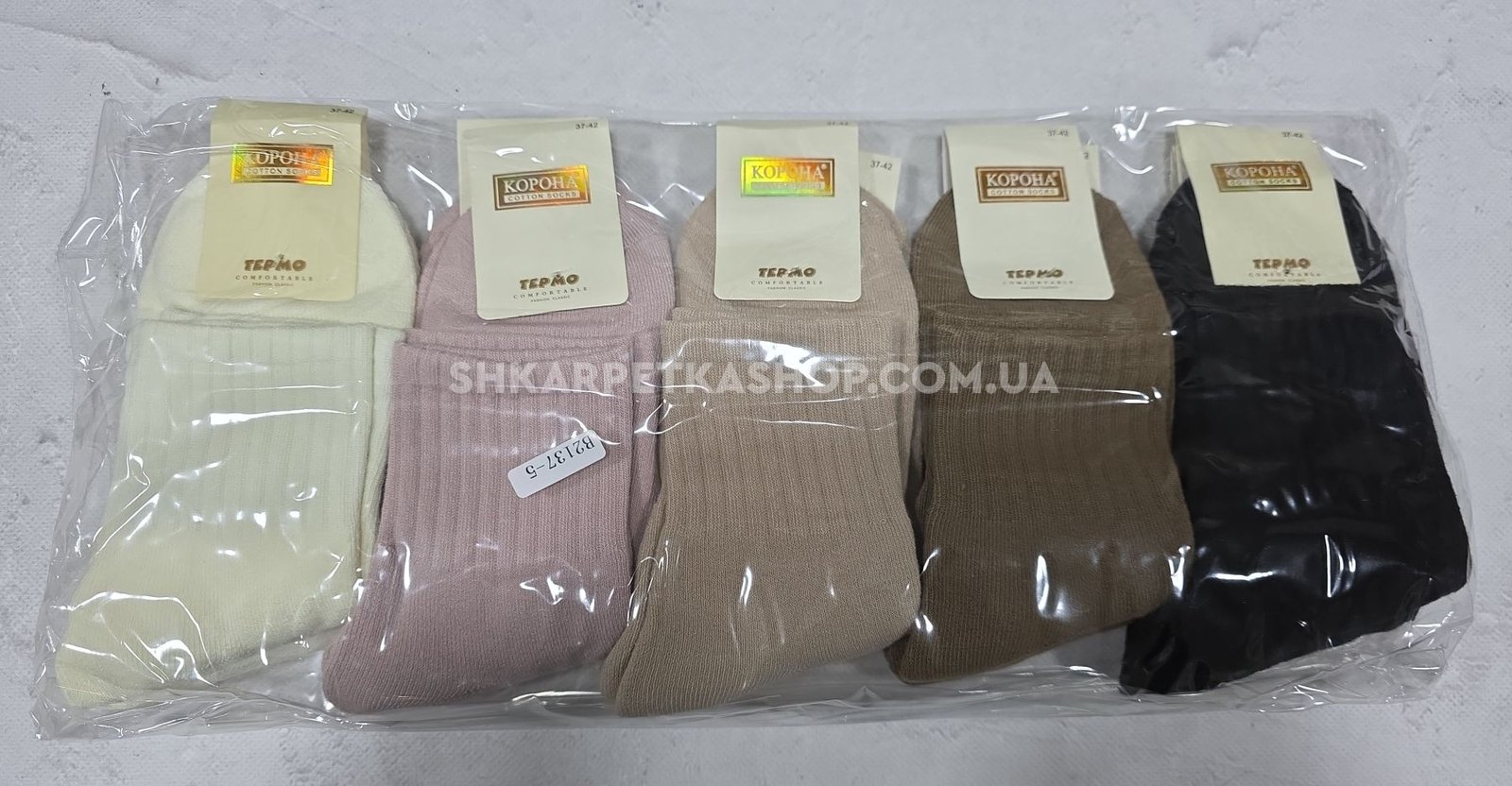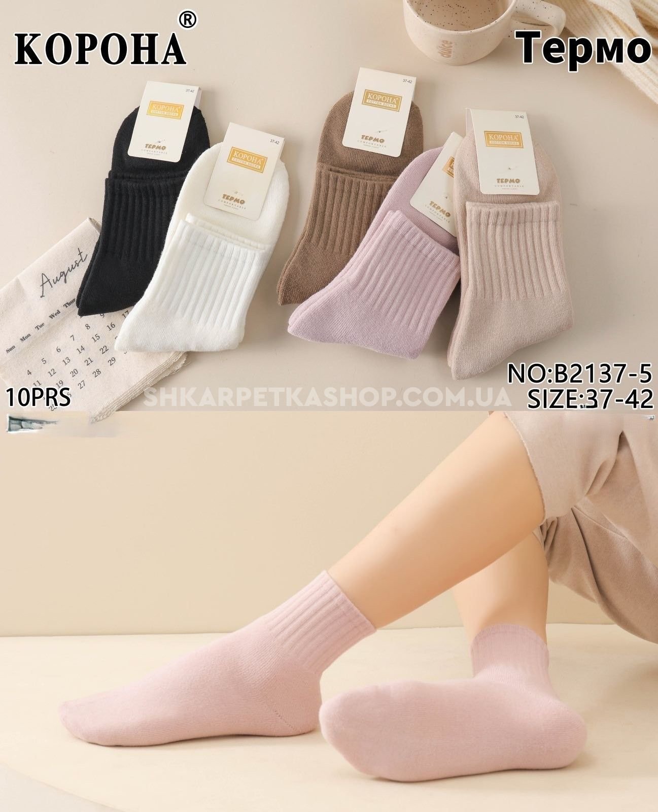 Шкарпетки "Корона" B-2137-5 махрові термо жіночі, р. 37-42 -асорті -(Однотонні з широкою гумкою в рубчик) -уп. 10 шт