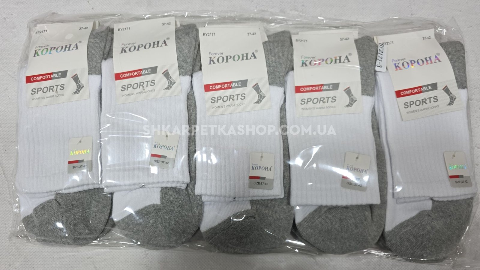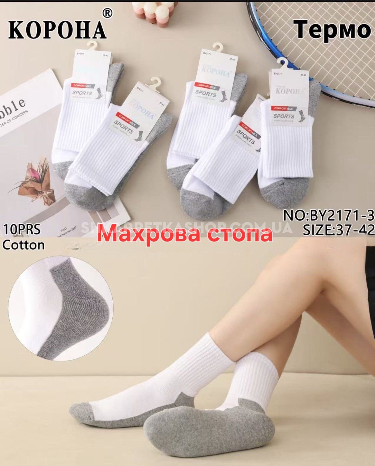 Шкарпетки "Корона" BY-2171-3 напівмахрові/ махровий слід жіночі, р. 37-42 -(Термо /білий верх +сірий низ з широкою гумкою в рубчик +махрова підошва /стопа -жін.) - уп. 10 шт