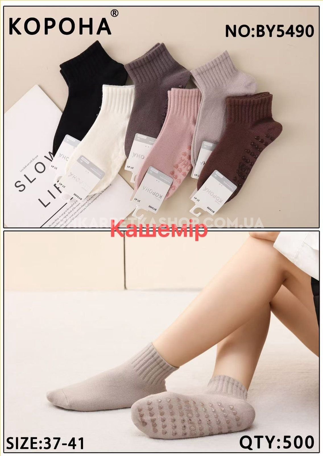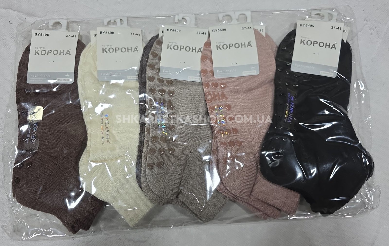Шкарпетки "КОРОНА" BY-5490 кашемір жіночі, р. 37-41 асорті -(Однотонні /укорочені з широкою гумкою в рубчик + силіконові крапки-гальма на стопі) -уп. 10 шт